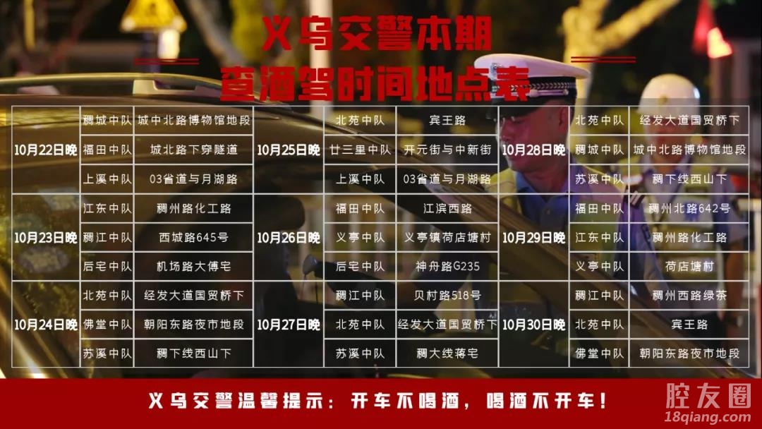 来了!从今天起到10月30日,义乌交警查酒驾地点公布!
