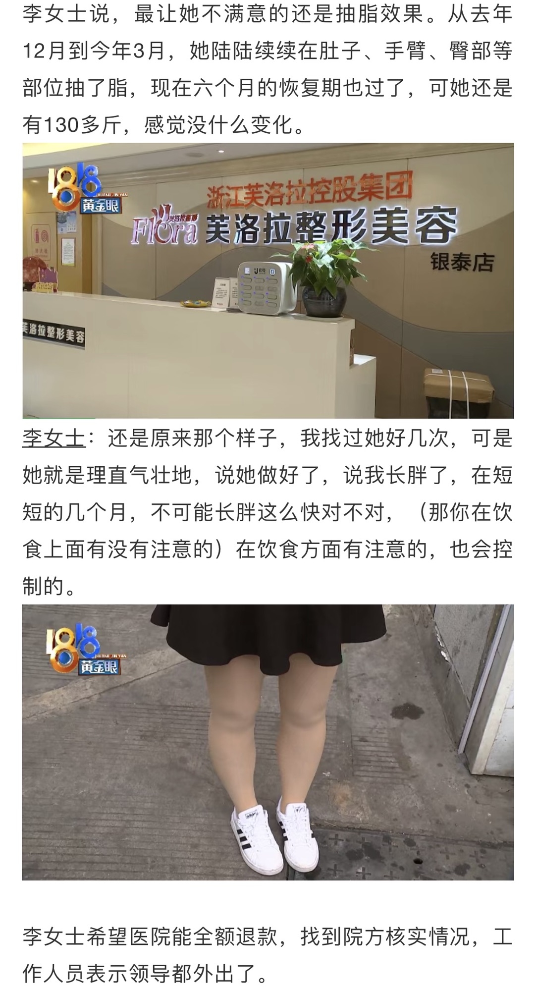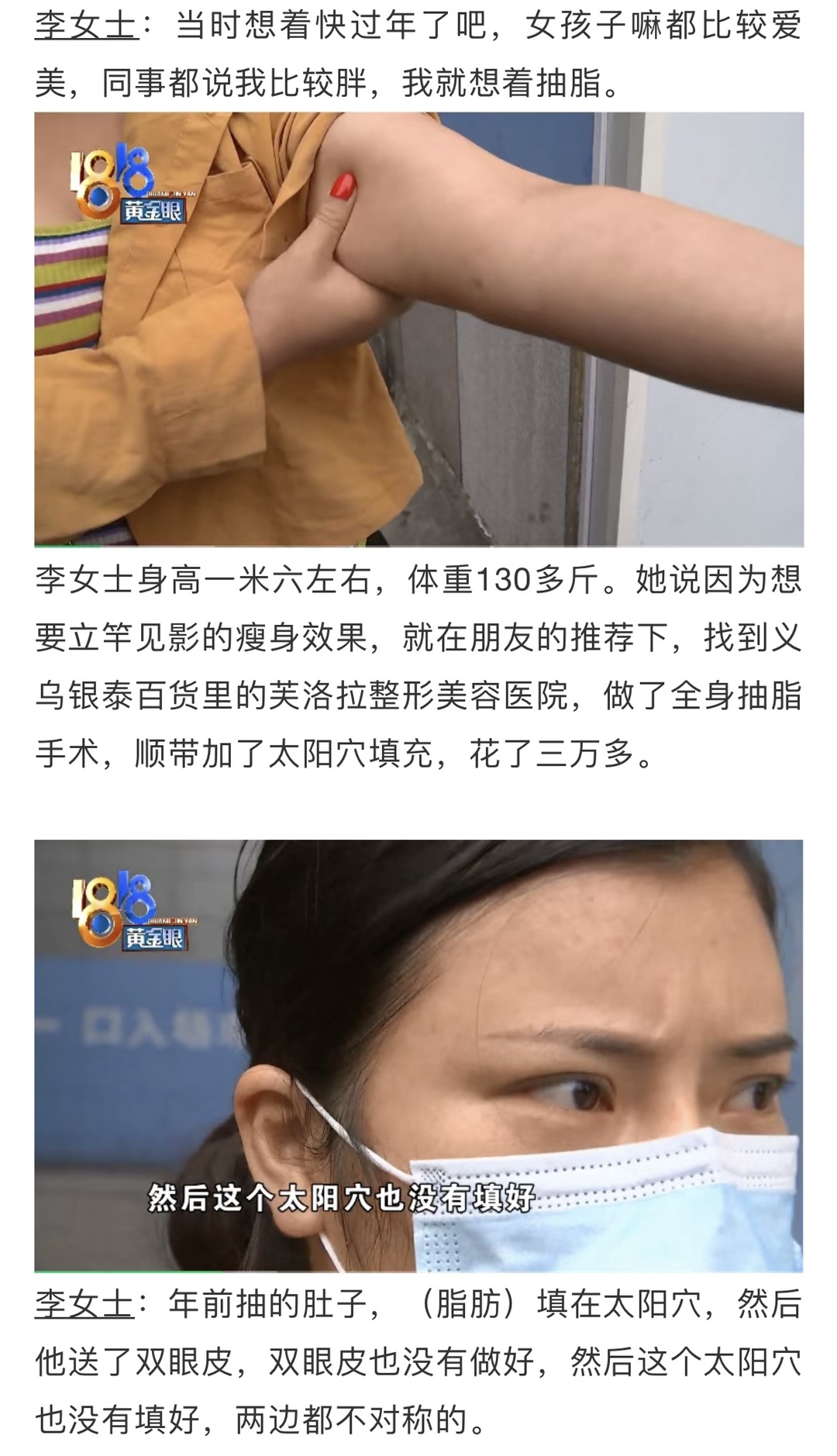 义乌女子去抽脂,几个月后竟弹回原形!对方称长胖了...