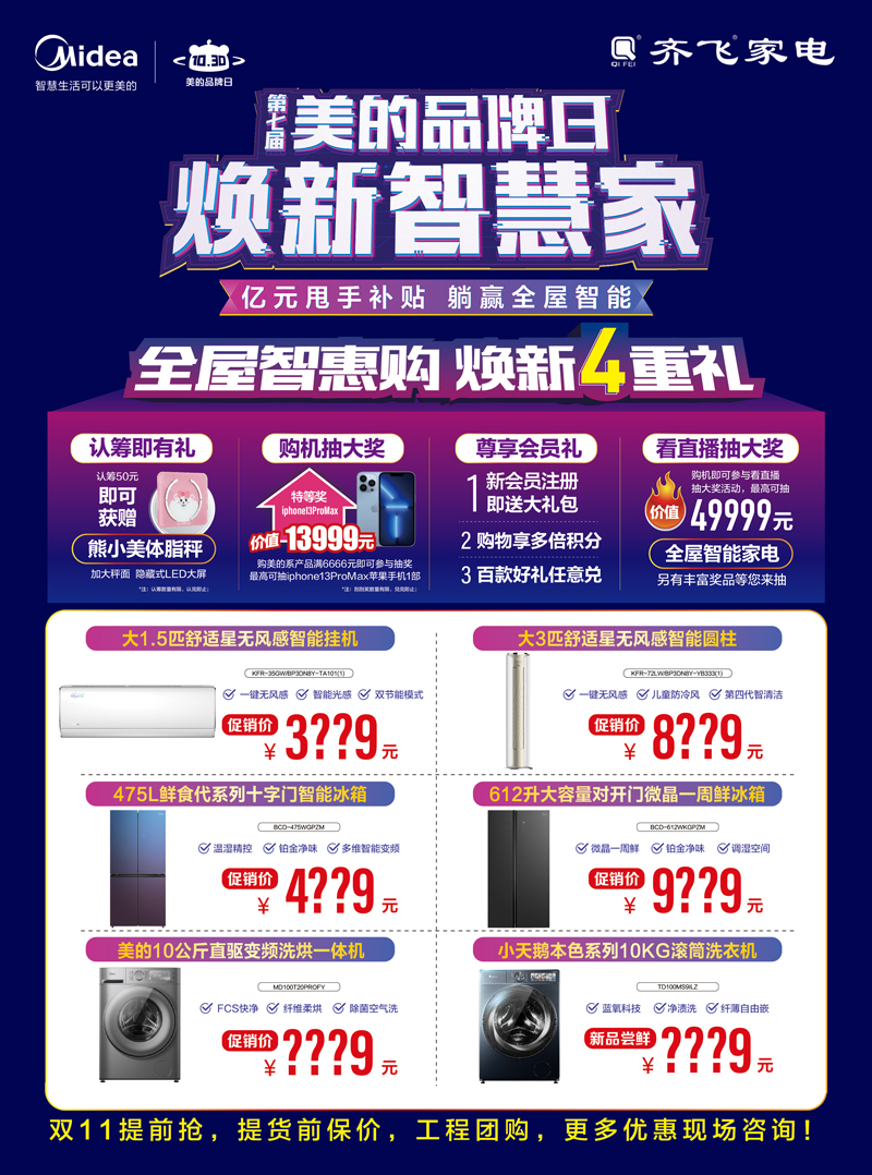 齐飞家电郑重承诺,本次直销价低于双十一,买贵就退差