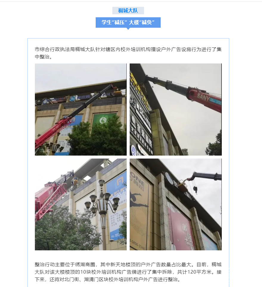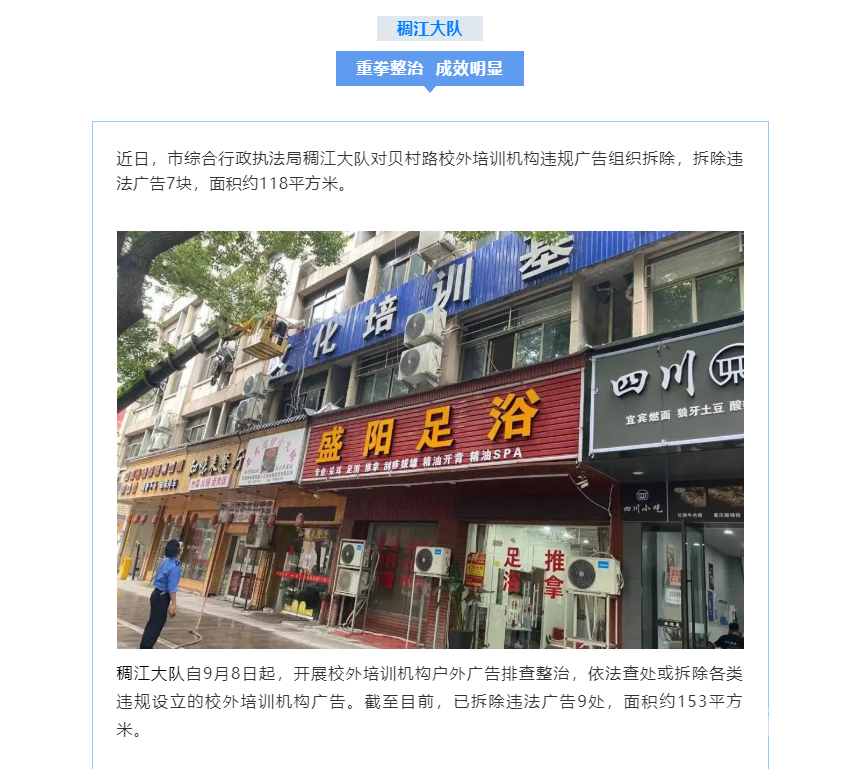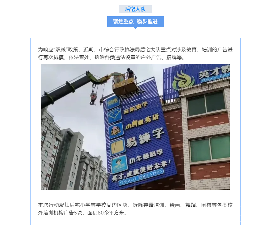 开展校外培训机构违规户外广告排查整治