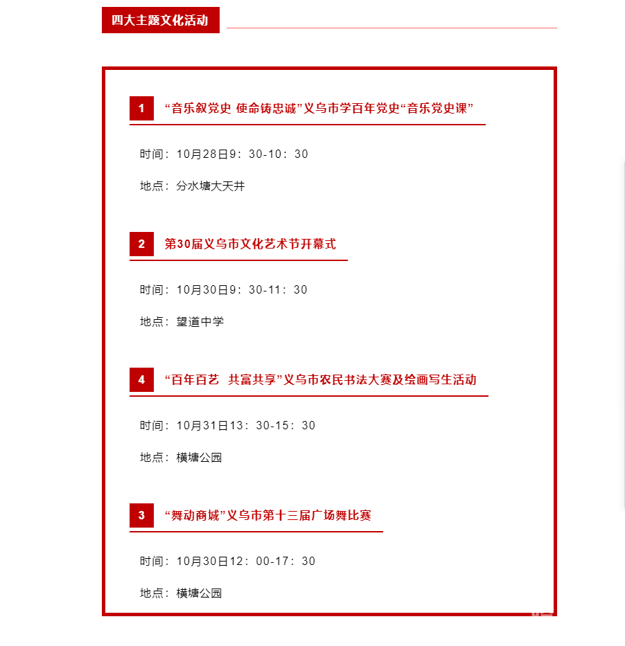 经过29年的积淀,义乌市文化艺术节是全市涉及面最广、参与人数最多、影响力最大的文化艺术盛会,已经成为一张义乌全民文化的“金名片”。