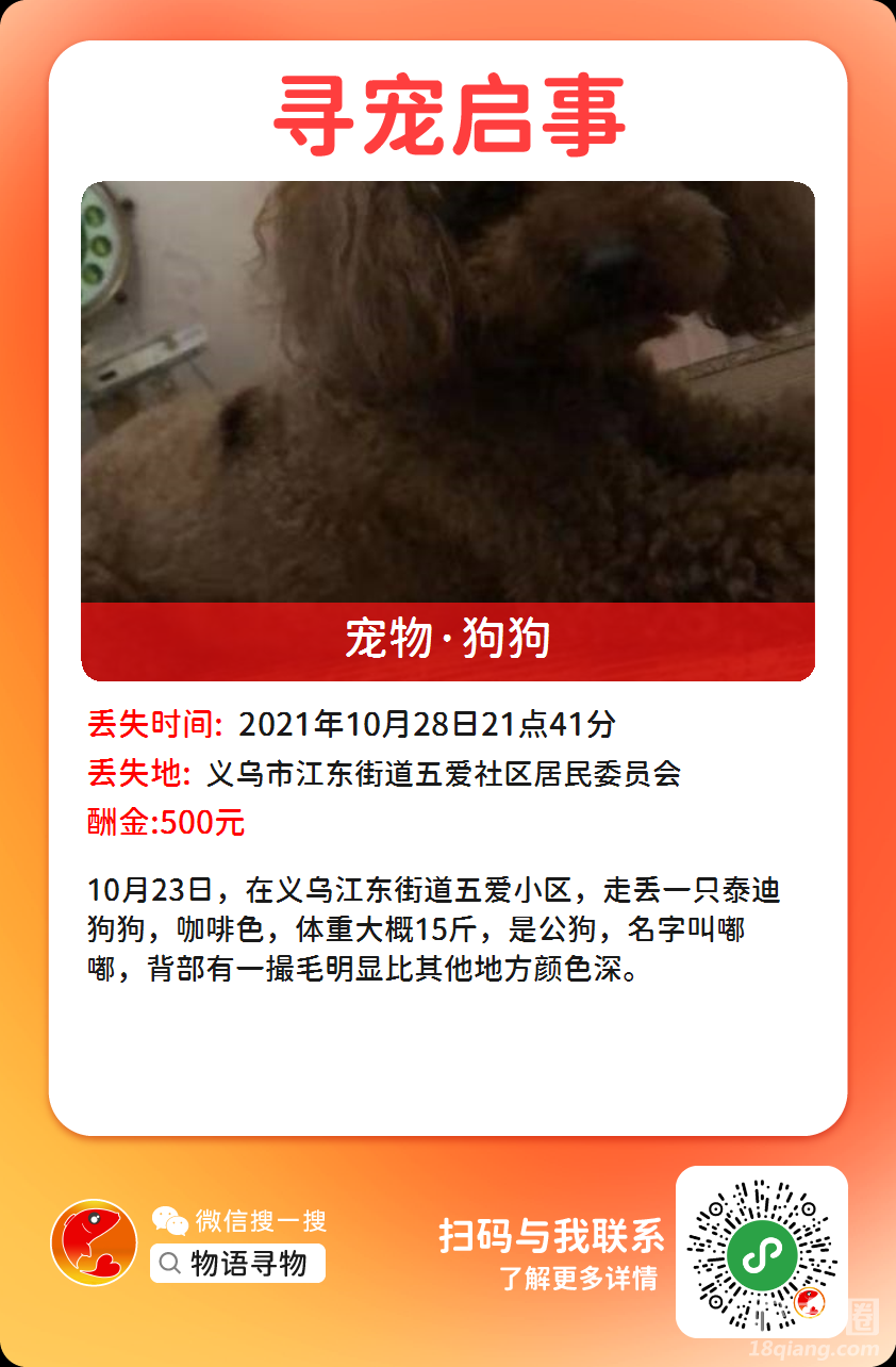 [义乌故事]寻找走丢的泰迪狗狗 [复制链接]