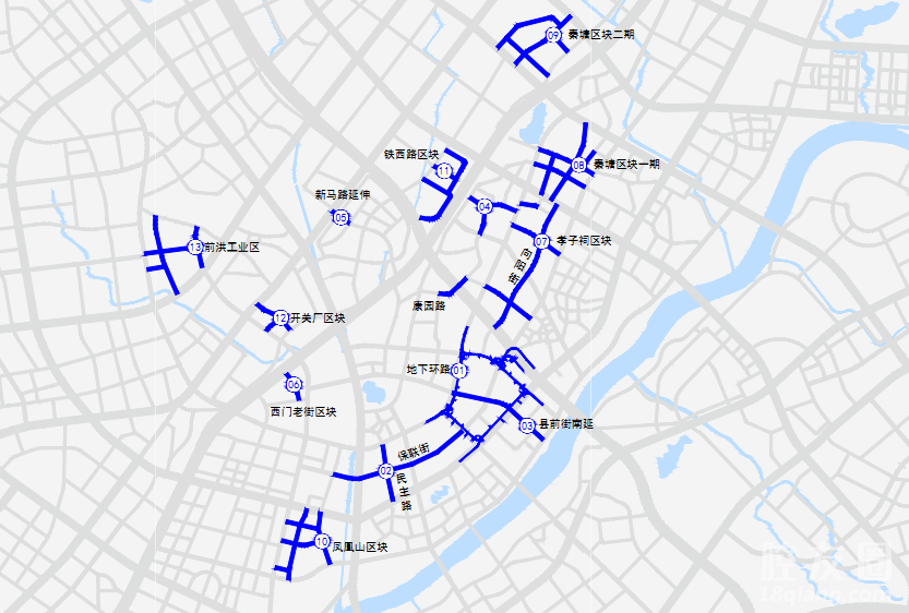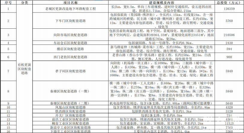 老城区更新改造地下环路配套工程、下车门区块配套道路、向阳市场区块配套道路、车站仓后区块配套道路、楼店区块配套道路、西门老街区块配套道路、孝子祠区块配套道路、秦塘区块配套道路(一期)、秦塘区块配套道路(二期)、凤凰山区块配套道路、铁西路区块配套道路、开关厂区块配套道路、前洪工业区区块配套道路、柳青工业区区块配套道路、新凉亭工业区区块配套道路、下骆宅工业区区块配套道路。