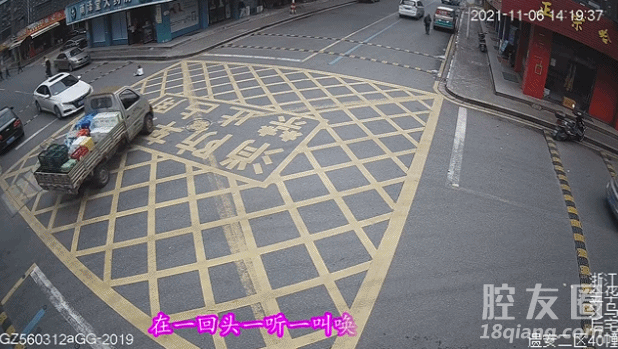 而男子似乎并未意识到事情的危险性,反而故技重施继续往前走,然而这次的回头,让男子自责不已。一辆装满货物的小货车出现在视野中,货车准备左转但此时左方正好有一辆直行车,孩子的位置正好在货车司机的视野盲区,货车一下子就撞上了孩子。还没走出监控画面的男子丢下小推车飞奔回来,抱起受伤的孩子。