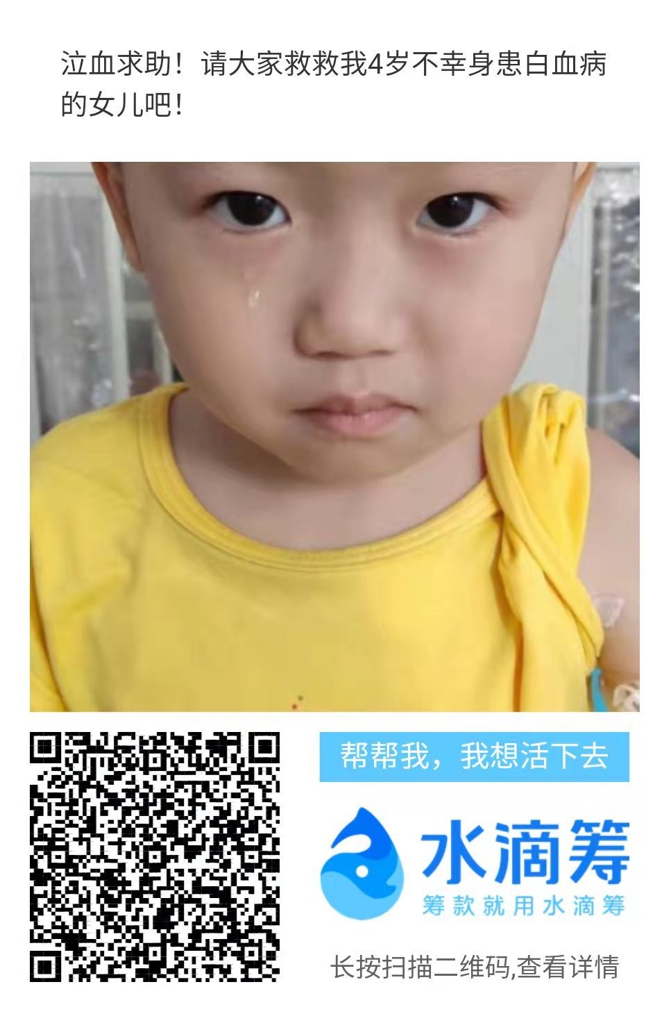 希望好心人看到,能帮我一把,省下一瓶饮料钱,帮爱女度过这次难关,