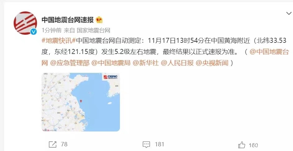刚刚地震了