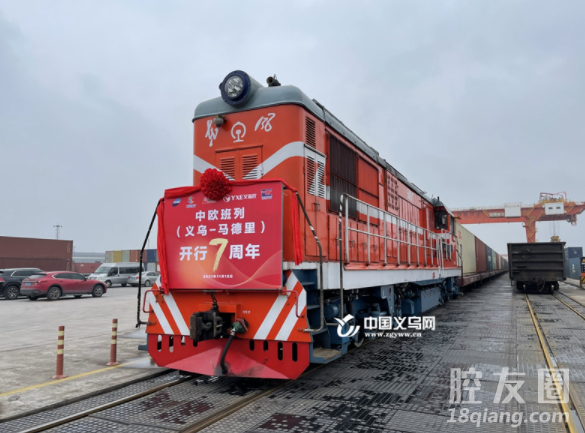 11月18日,“义乌—马德里”中欧班列线路迎来7周岁生日。