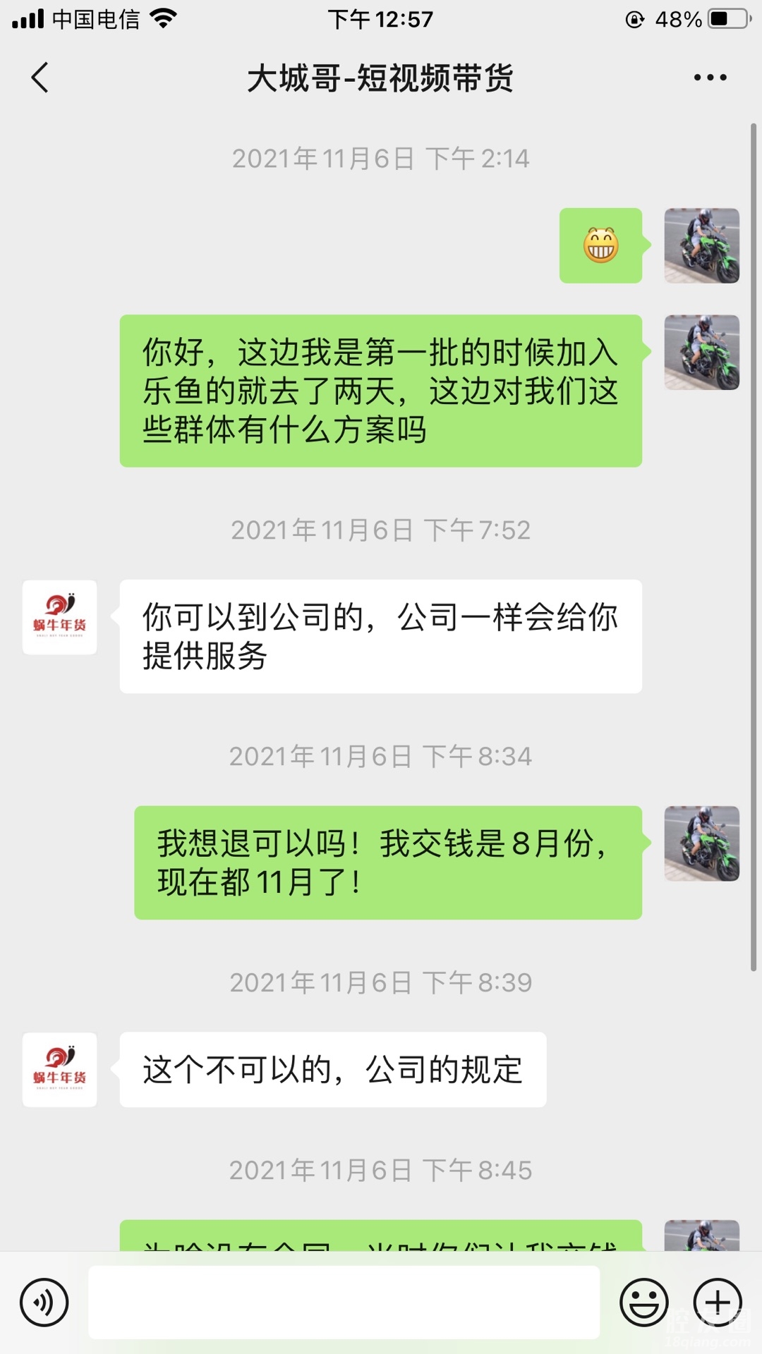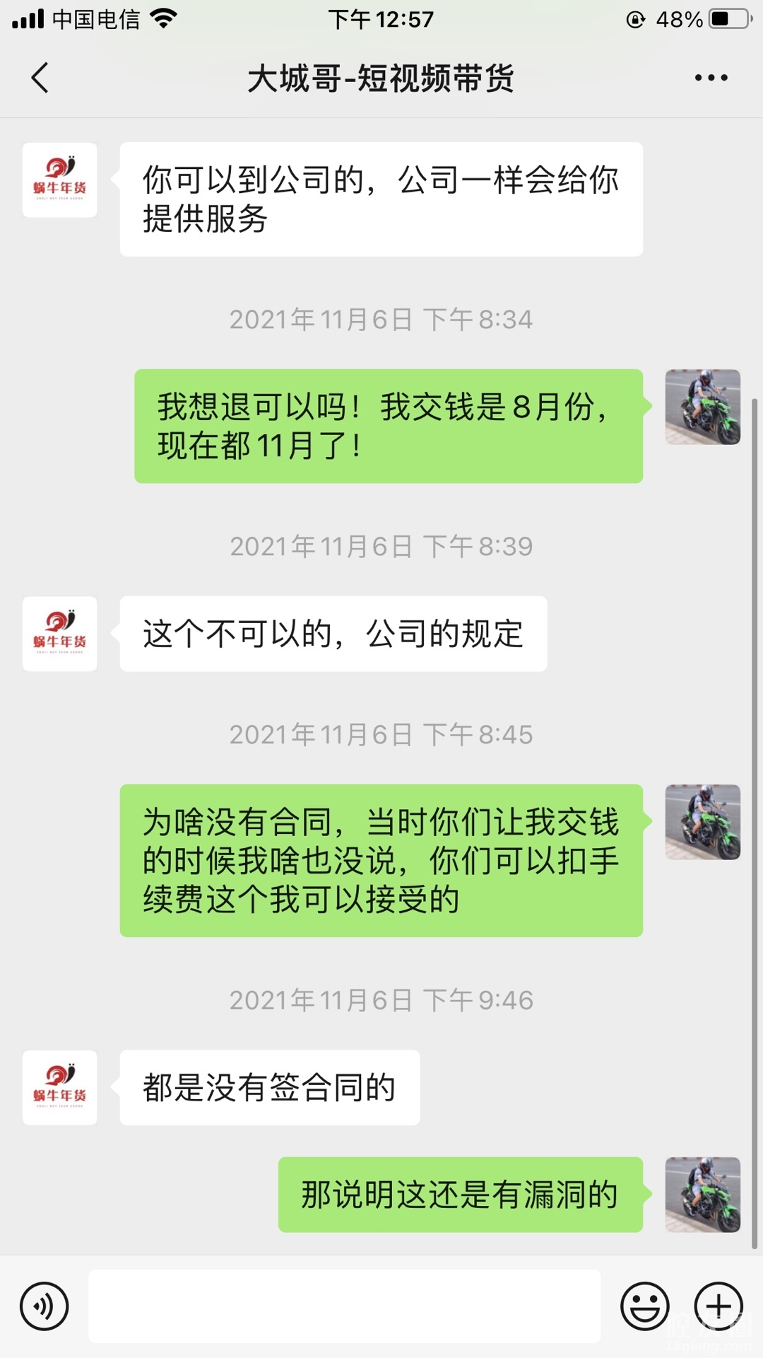 都是坑人的公司!原本抱着去学习怎么做视频,如何直播带货可现在呢!先不说这家店怎么样!我记得我是8月份交了5000的一个培训费,本来想着要试一天两天的可惜人家连体验都不给体验!逼着让我交了学费!可惜去了两次感觉和自己的预期有很多的差距,我就没去了,就想着跟那个销售联系一下退一部分钱,可惜呀人家鸟都不鸟我!有点店大欺客的感觉,到现在11月份基本遇到跟我一样的情况的人有很多,我们也建了一个群!去沟通,没想到更加牛逼,你有本事你自己去投诉吧!压根就不管我们学员的诉求!一副天王老子都不怕的态度,我就想问一下义乌的国家干部为啥我们去投诉都是你推那边,那边推这边呢!我们也是出门在外打工者!也没人给我们撑腰,心寒的我的老寒腿都要犯毛病了!看样子是没希望了!去沟通退钱,一句话那老板亏了50万请问我能不能退给他们!经过我的思考他们退我5000我得退他们50万吓得我3天都不敢出门,太可怕了是不是买了我们ga 子哥的Jiu 喝多了说出这样的话来!