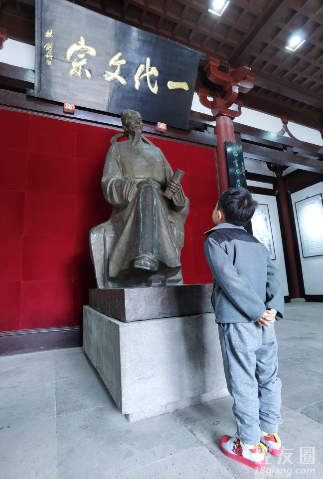 每天上学路上都要听读懂诗人才懂诗。这周一开始刚好播放骆宾王篇——知道了骆宾王是义乌人一定要我带着他来打卡骆宾王公园,他说想看看公园里是不是都是古诗 ,可惜让他失望了,公园里都是大妈大爷的歌声  园内的骆宾王纪念馆除了生平事迹重要事件,所有介绍里只有一首《咏鹅》有详细记录,像《在狱咏蝉》,《于易水送人》,《从军登城楼》都是一笔带过,其实最想看看中国历史上四大檄文之一的《为徐敬业讨武曌檄》。公园内的银杏树和枫树是观赏的时候了,技术不够,拍不出银杏的金光闪闪与枫叶的火红似火。