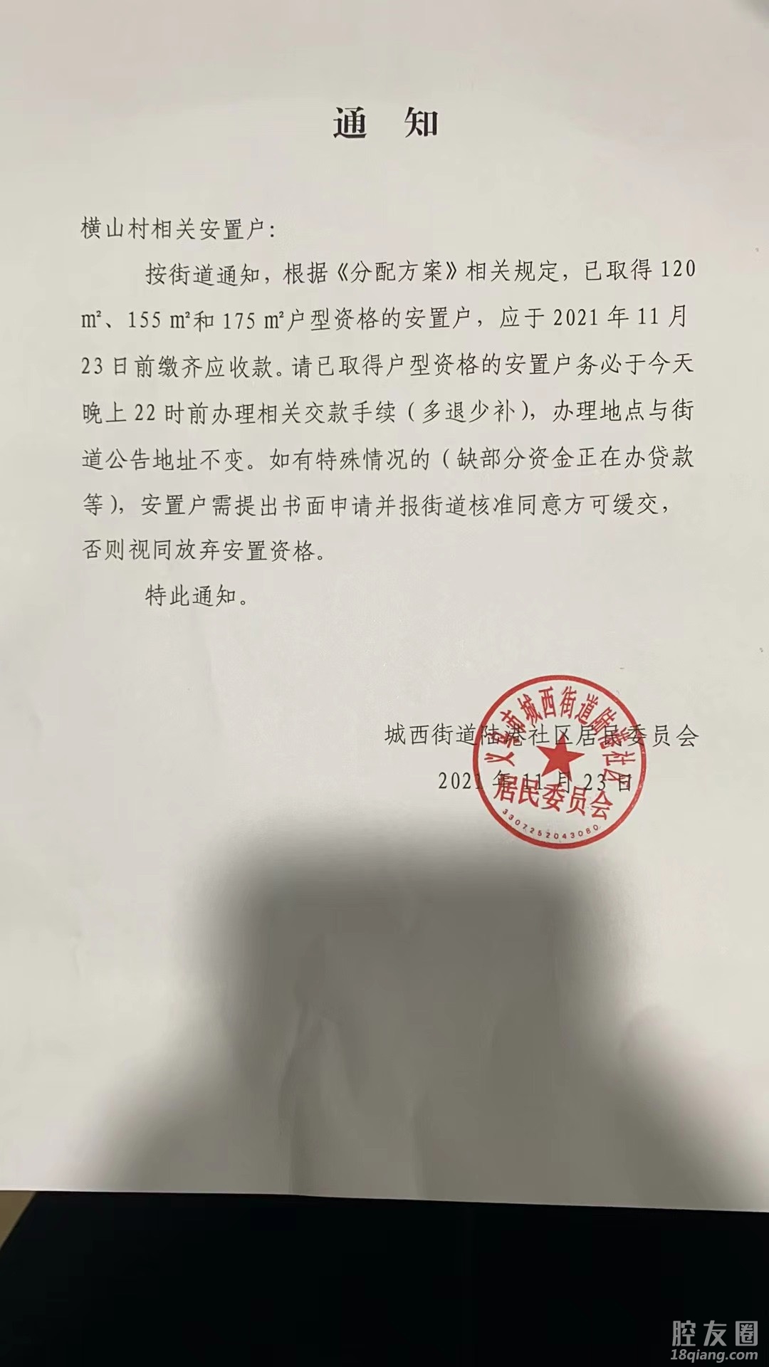 城西街道香溪景园安置,如火如荼正在进行中。本身农户住新房,改善生活的好事情!可是安置户有150套的缺口,不能保证农户拿到一户一套。如需拿到安置房需调剂,政府部门调剂,老百姓买单。2018年横山支持西站二期建设顺利推进,积极配合政府拆迁,当时动员小组说的比唱的好听,你们的造价2700/平,车位5万/个,拍着桌子保证每户一套100%,如今3周年过去了,造价高达3800/平,车位10/个,某委员说这是政府规定。义乌发展迅速,为人民谋福利,现在是扼着百姓喉骨,你不交钱就取消抽房资格!早上各级领导美其名曰听取横山百姓心声,会好好考虑百姓诉求,暂缓交款事宜,等领导班子有商讨结果在进行不迟,晚上就在村没群大势宣扬11-23号22点不交就取消抽签资格,这是什么样强盗行为,这什么样的父母机关,望见到帖子的景园住户转发,让大家评评理!