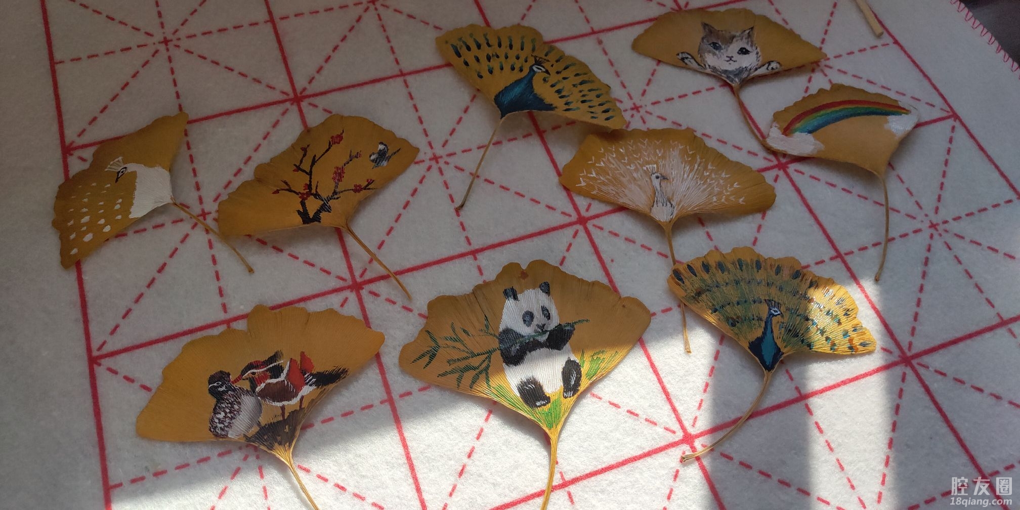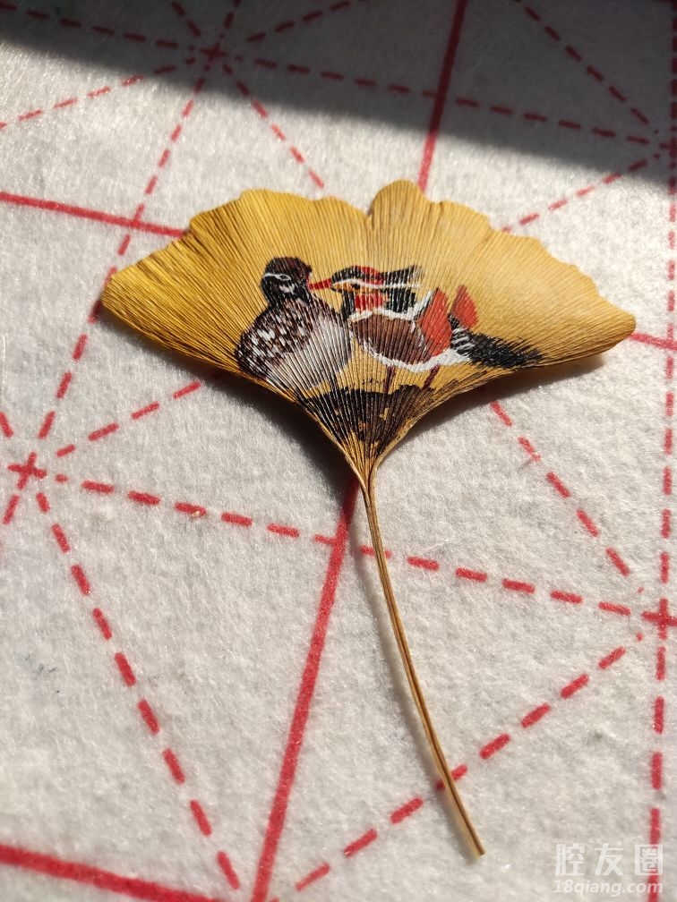 这纷纷银杏已坠落,往日深情早已成空;这流水悠悠匆匆过,谁能将它片刻挽留!所以,我把公园捡的它涂鸦下做个标本书签吧。百度上网看了许多国风图案随意画下。