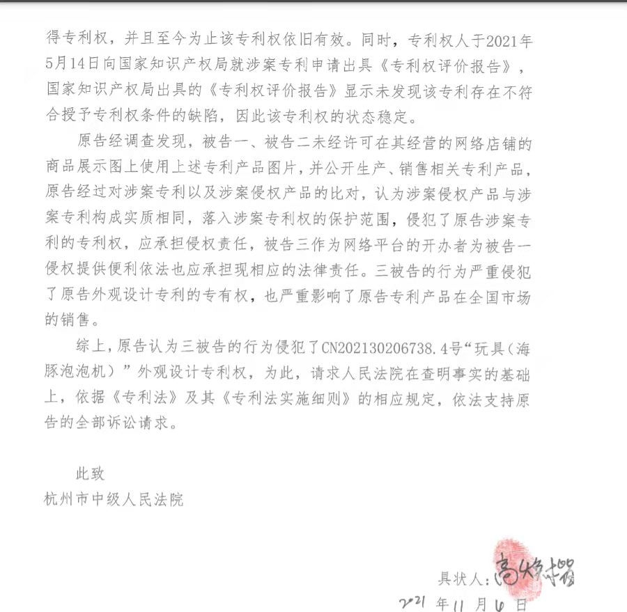 防不胜防啊!在义乌玩具商那拿了3个海豚泡泡机,就被人告外观专利侵权索赔5万,电商不能乱上产品啊,现在这样的起诉太多了,咋整!  十八腔律师大哥,支个招!