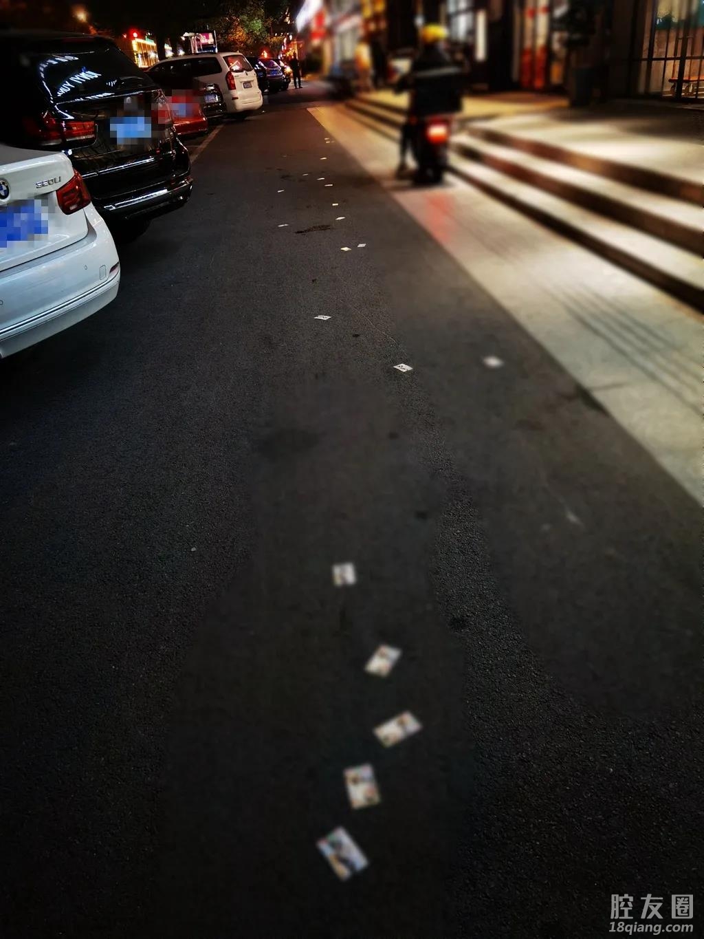 “看到有个送外卖的年轻人抛撒过”,11月24日晚上10时许,一辆可疑电动车进入了视线,驾驶人穿着黄色外卖服,后座男子扬手向路上抛撒出几十张小卡片……