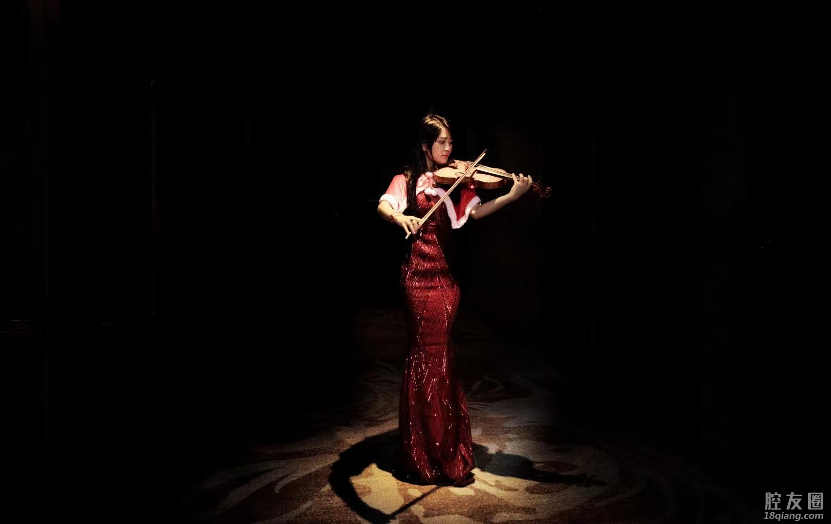 伴随着小提琴优美的旋律和漫天飞舞的晶莹雪花,乐手缓缓依次走到“圣诞树”下,用悠扬的歌曲点亮每一棵悬挂在天花板上的圣诞树。