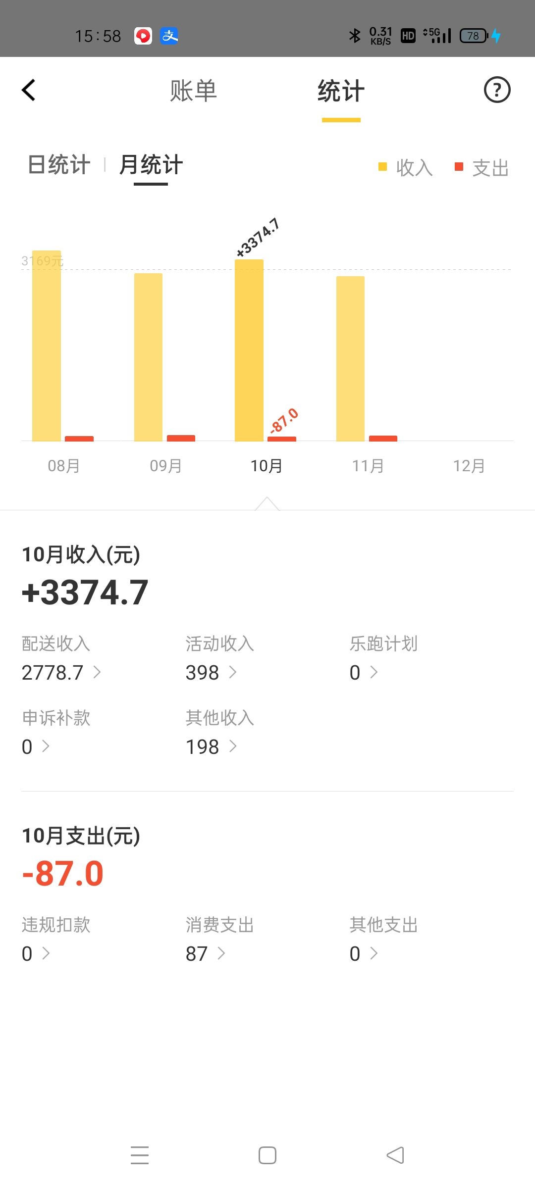 下班之后跑外卖,每个月三千左右 ..