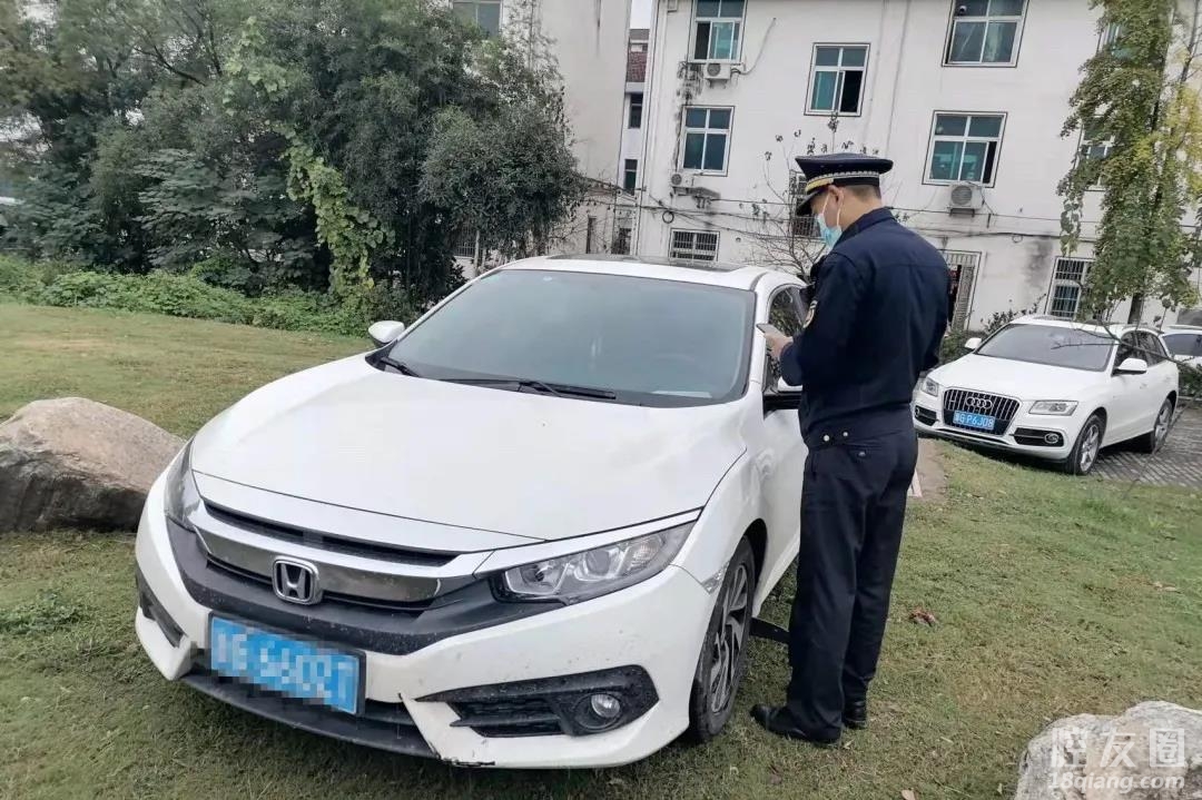 2021年11月4日8时46分,执法队员巡查至义乌市廿三里街道商城大道东新村路段时,发现该处绿化带上停着一辆小型轿车,破坏绿化。执法队员依法对其进行查处。