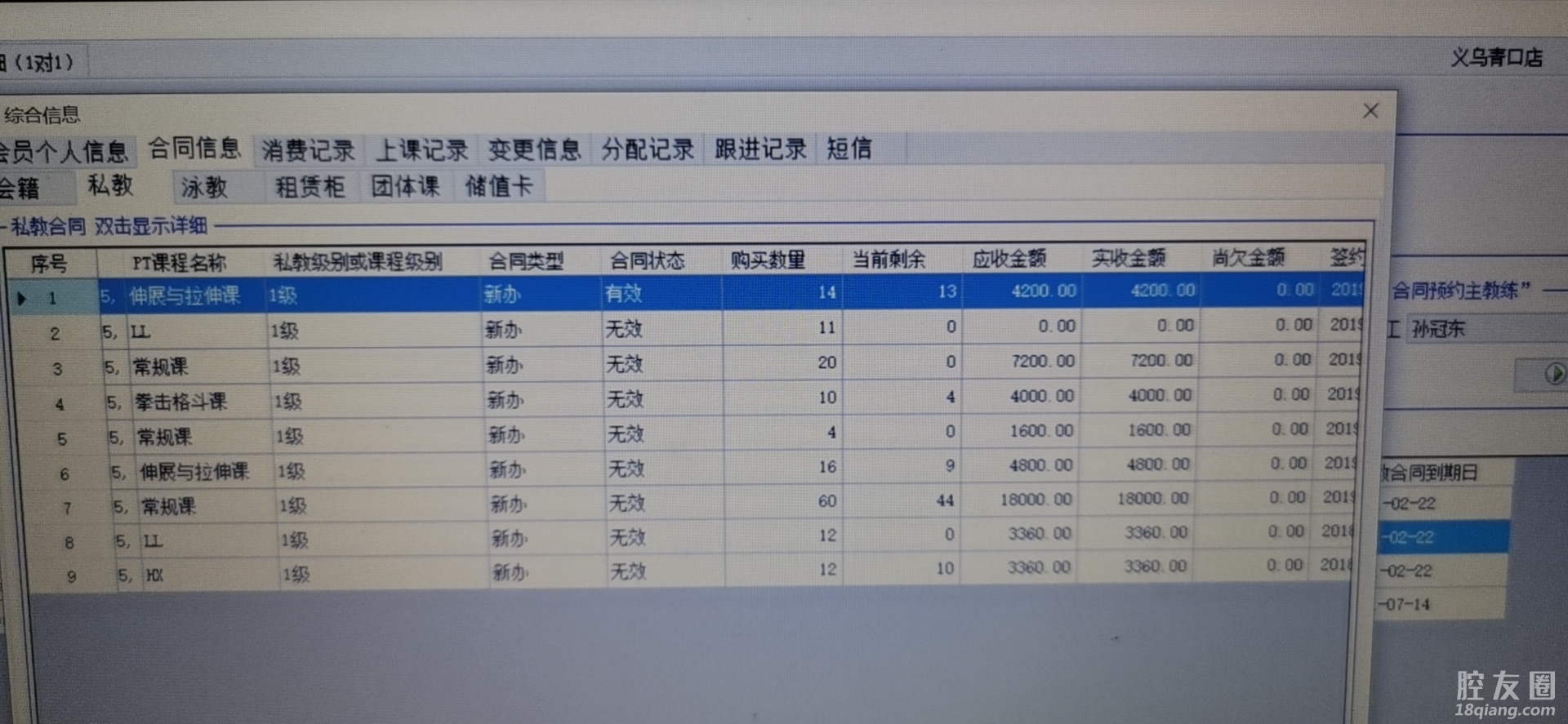 本人于2019年初在银海健身青口店购买3万多私教课,之后的两年里,健身房频繁更换教练,在这个过程,我接触的教练不下五位,买课之前说的合理的锻炼,饮食等规划,一切都是空谈,完全没有良好的健身体验,后来停了一年没去上,在这期间,也从没有教练联系我。