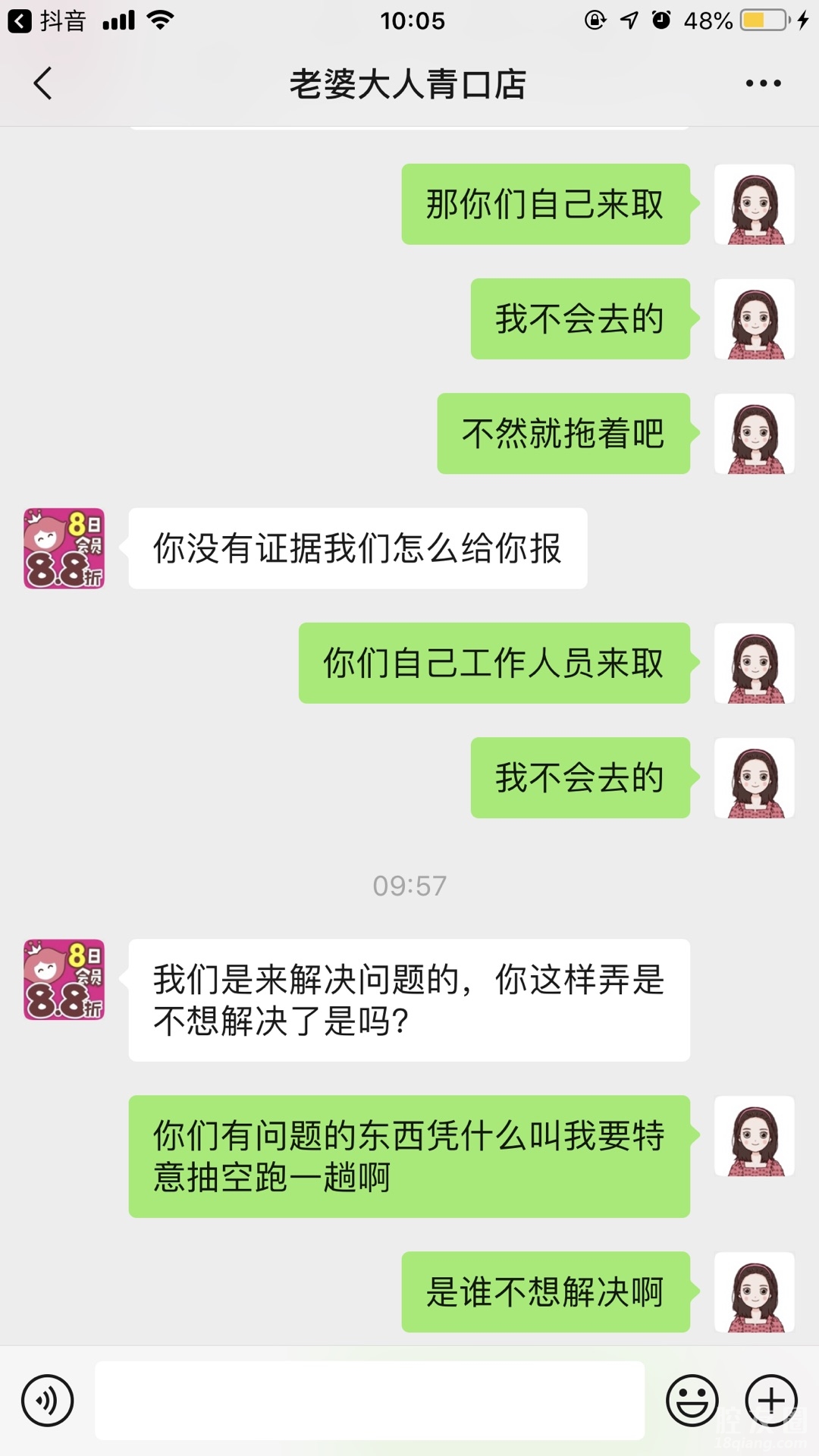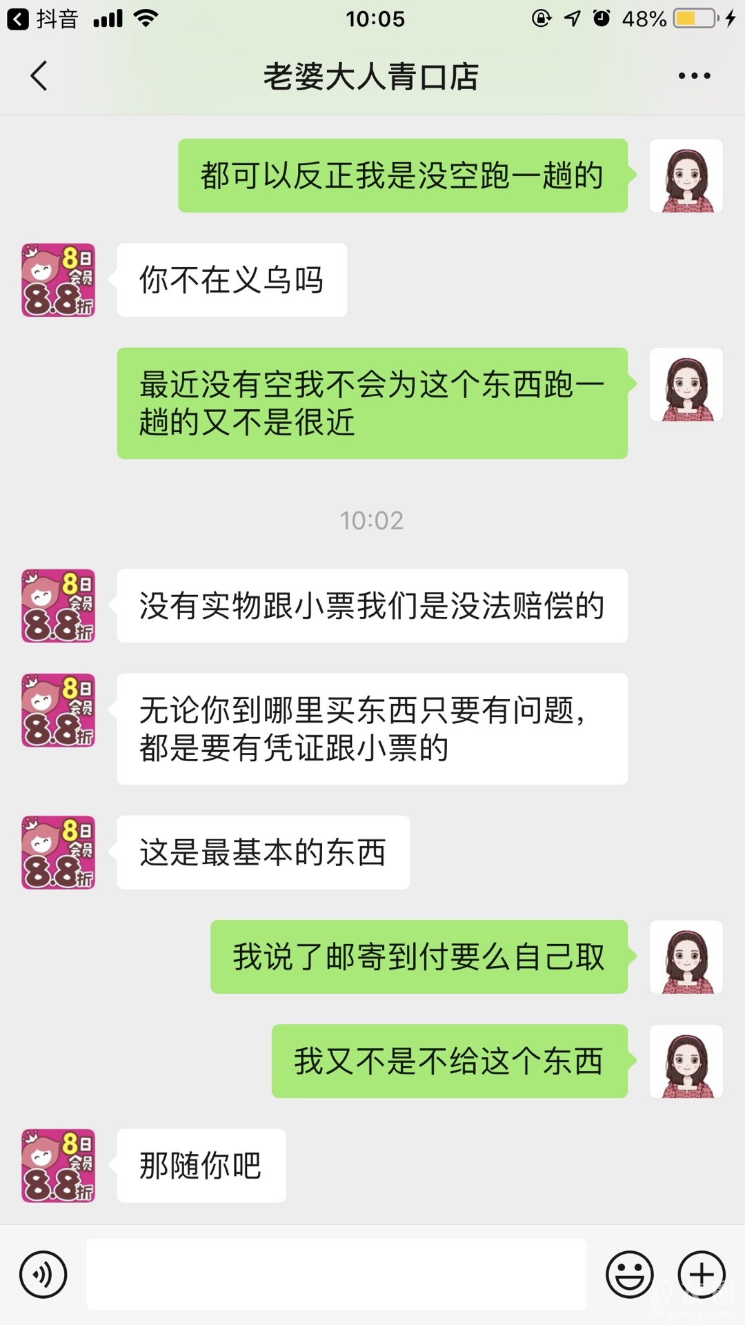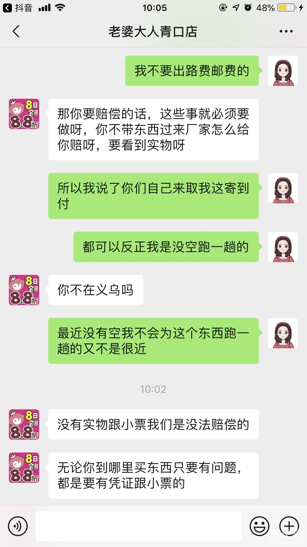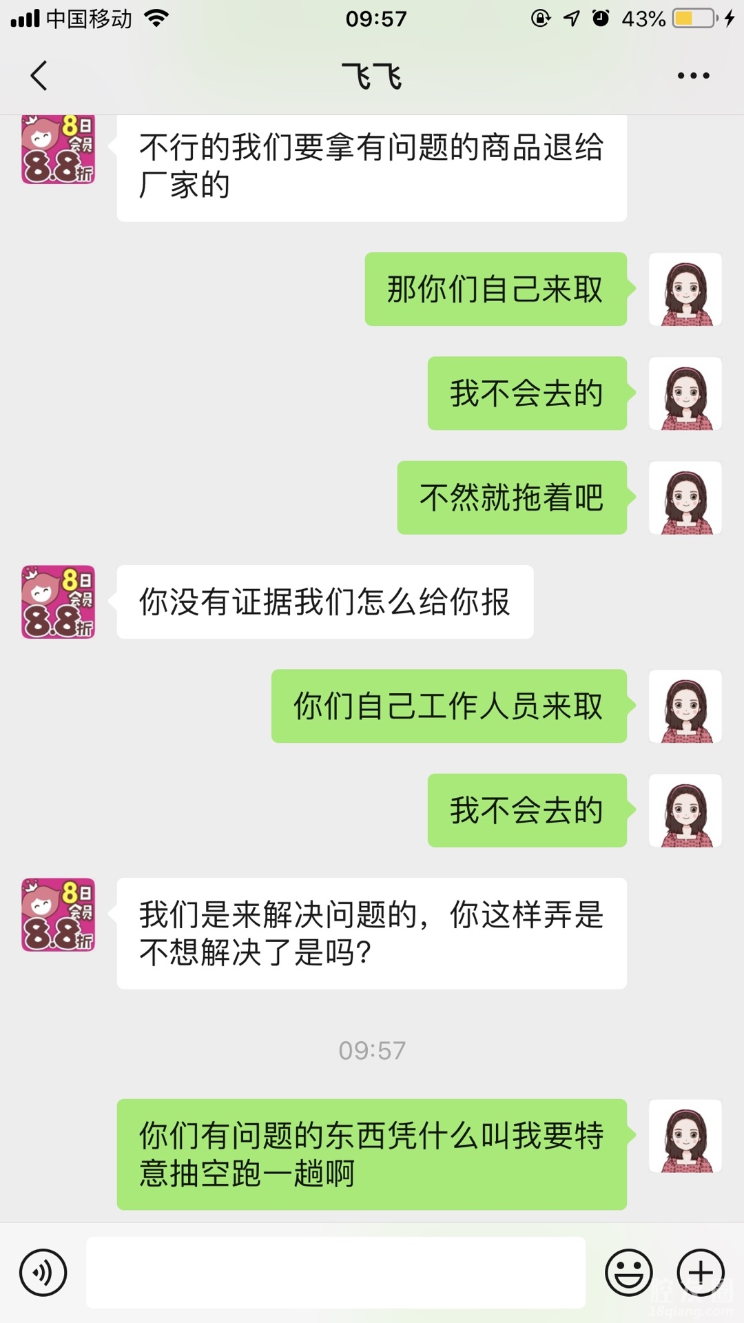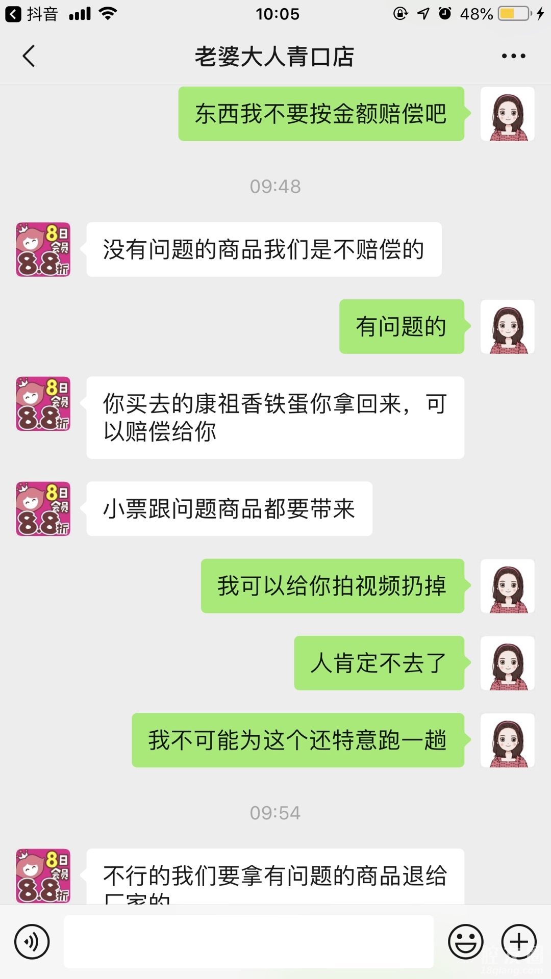 买了发霉产品投诉到315要赔偿,说只能一赔十,那就算了,我也接受了懒得去搞,结果现在发他又这样,非得我跑一趟,自认倒霉了只能,真的服了出售发霉产品还这么拽~