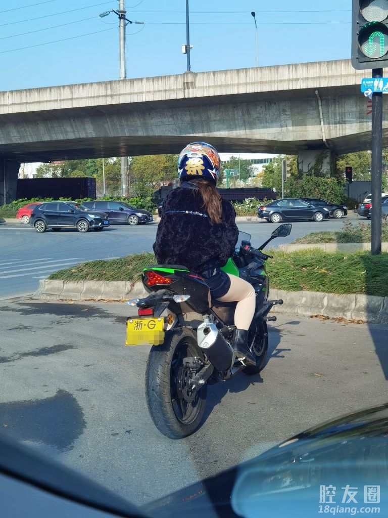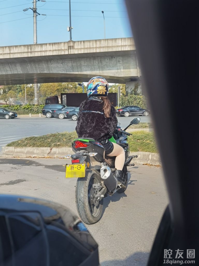 我上班路上遇到女骑士一枚,这天骑车不知道冷不冷。