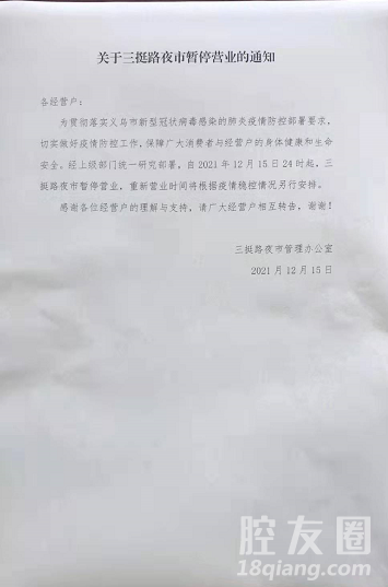 义乌三挺路夜市最新消息来了!从2021年12月15日24时起,暂停营业!