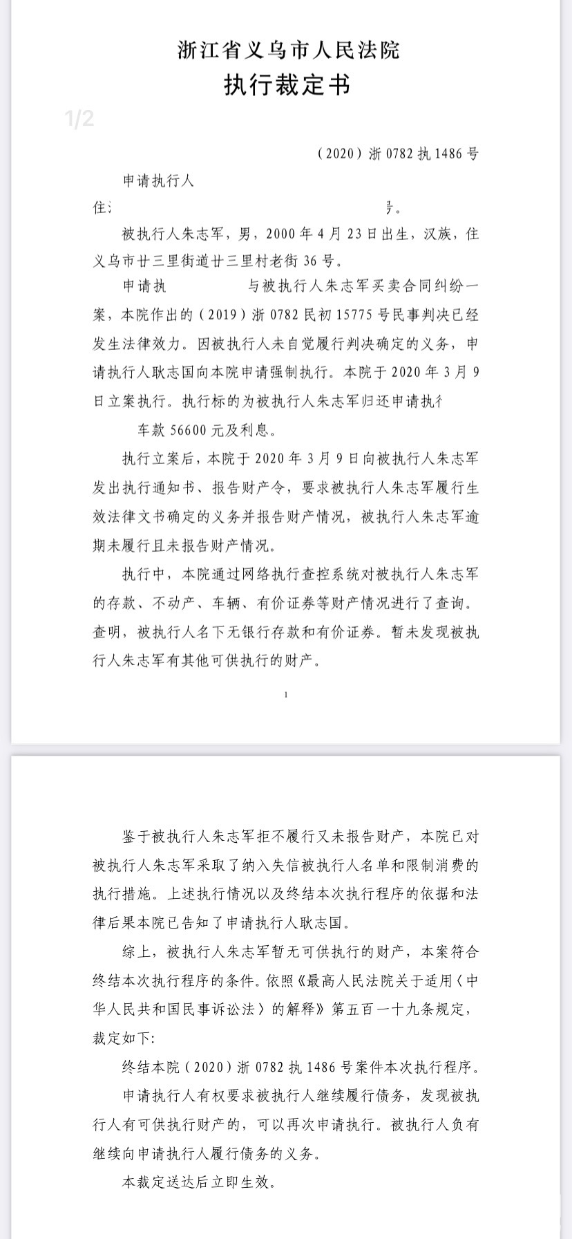 义乌老赖 一家都是 朱*军 住廿三里 欠钱不还 两年还了3000 他妈在商贸城四区71号门*街做生意  各位义乌老板看清楚在跟他家做生意 他爸:朱*刚 他妈:祝*霞