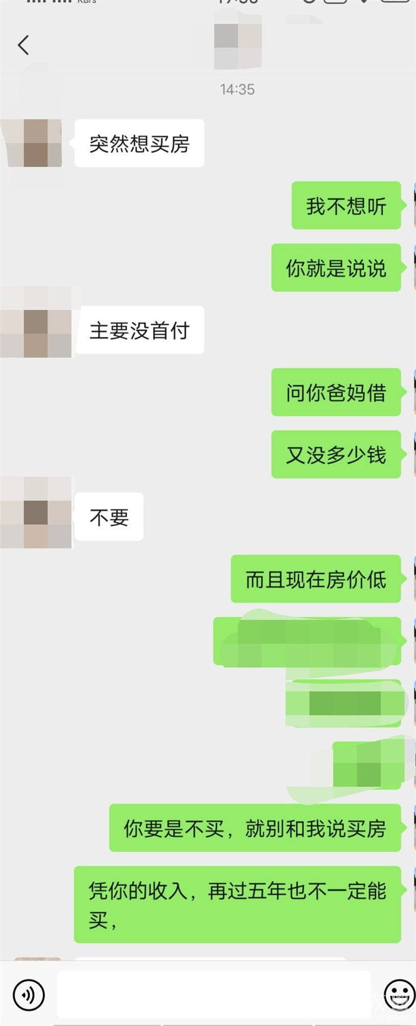 她想要我付首付,她付按揭我觉得没必要,还不如我自己全款,以下是对话。