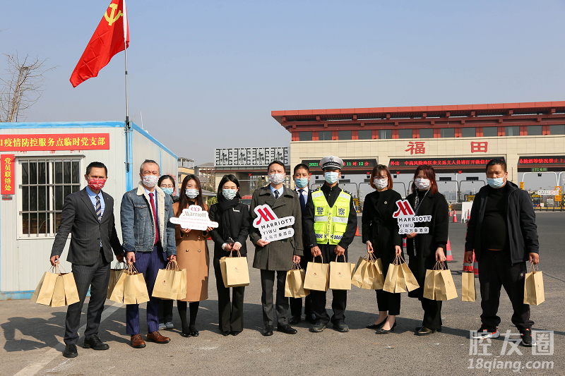 在福田高速口疫情防控服务点,义乌万豪酒店及万豪行政公寓驻店经理杨晓东先生携酒店管理层为防疫工作者精心准备了慰问礼物,并送上最诚挚的感谢与祝福。在这严寒的冬日,希望小小的礼物能够给防疫工作人员带去丝丝温暖。