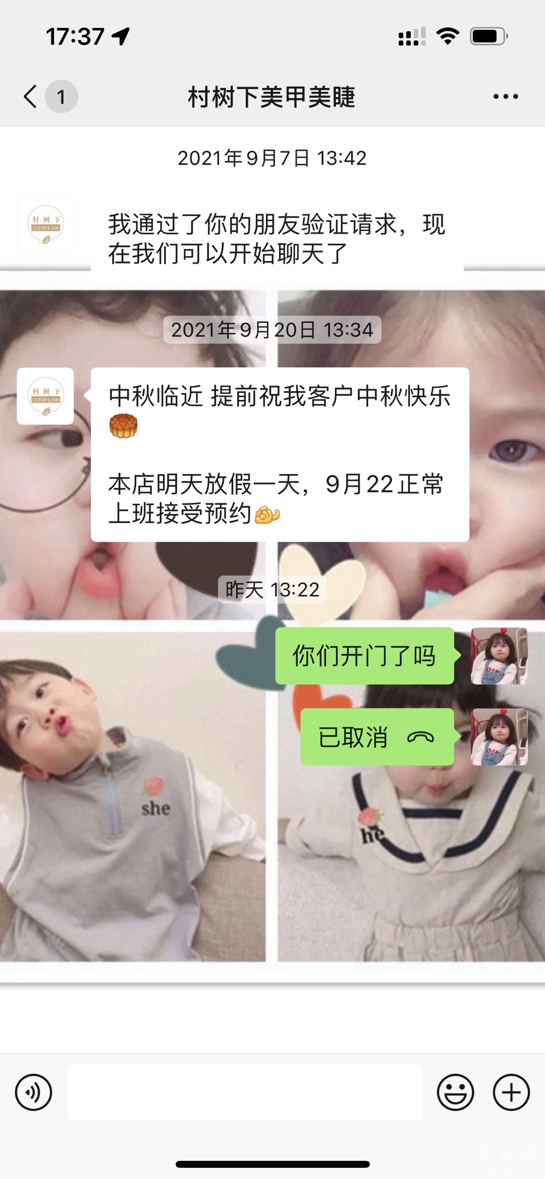 今年九月份看到抖音上面他们发的99自助活动,名字叫村树下美甲美睫,在义乌之心边上的卿悦府。去做了指甲店里老板娘推销说有468可以做三次美甲可以做一次延长甲的想着过年再去做就会比较划算就买了一份。加了微信他们一直都有发视频跟在做的朋友圈里面装修像是刚装完的 两层还蛮好的。到12月1号开始说去学习到8号之间不接待,后面疫情12号发了个朋友圈说疫情不能开门到现在一直都没有更新过朋友圈了,然后昨天发信息去问什么时候开业 没有回复打语音没有回复,美团上面显示关店 高德上的电话打去说是租房中介,抖音上面电话打过去也是租房中介的号码。今天去看的时候店面已经搬空了。微信也没有说过这个事情 ,有上当受骗的人吗