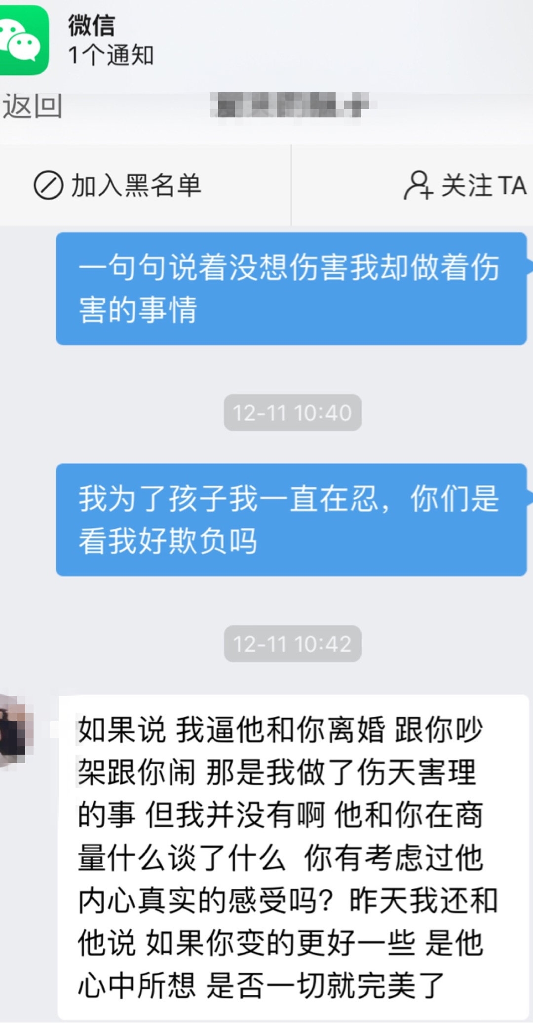 9.22出现的事情,12.11我第一次去私聊小三,因为我们谈不拢离婚事宜!