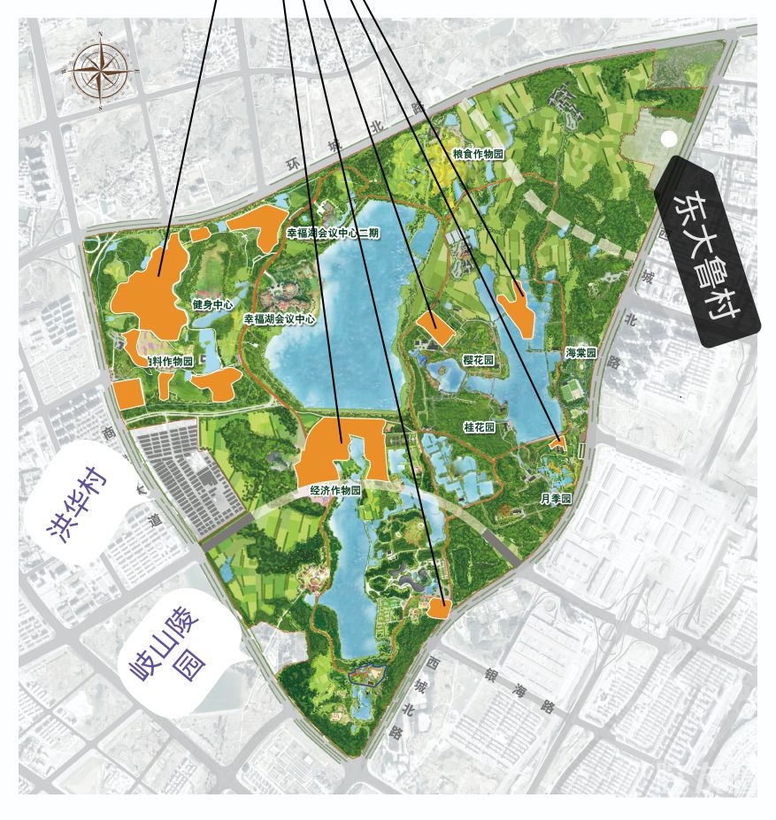 植物园道路围合范围内,只有洪华村、东大鲁村和岐山陵园不属于植物园,也就是说,能够零距离接触植物园的,只有洪华村、东大鲁村和岐山陵园,而村子正对整个植物园的,只有东大鲁村。
