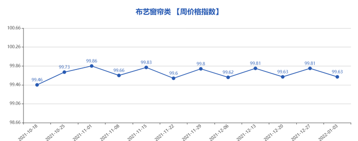 布艺窗帘类本周价格指数99.63点,涨后回落。受针纺布、配件等原材料价格上涨的持续影响,窗帘类行业利润略有下降,整体销势保持平稳。内销方面,个性化定制窗帘销量稳中有升,主要销往义乌及周边地区;花纱、遮光布等产品受到采购商喜爱,销量显著提升。外销方面,部分低档窗帘布、百叶窗及配件产品因其价格低廉的特点,受到中东和非洲国家地区客商的青睐,成交可观。