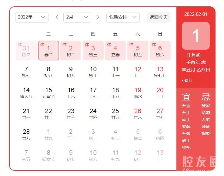 根据国务院办公厅通知精神,2022年春节放假安排通知如下:1月31日(星期一,除夕)至2月6日(星期日,初六)放假调休,共7天。