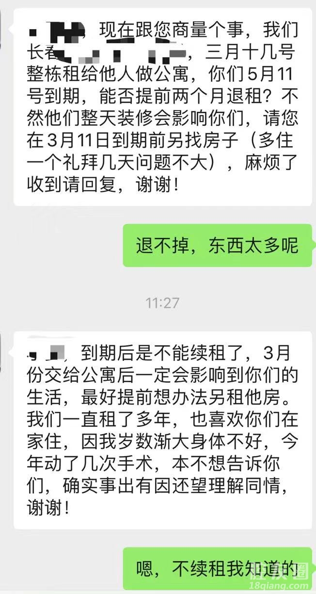 去年8月住的也是被二房东租去,改公寓,今天办公室房东也发来信息,要求提前退租