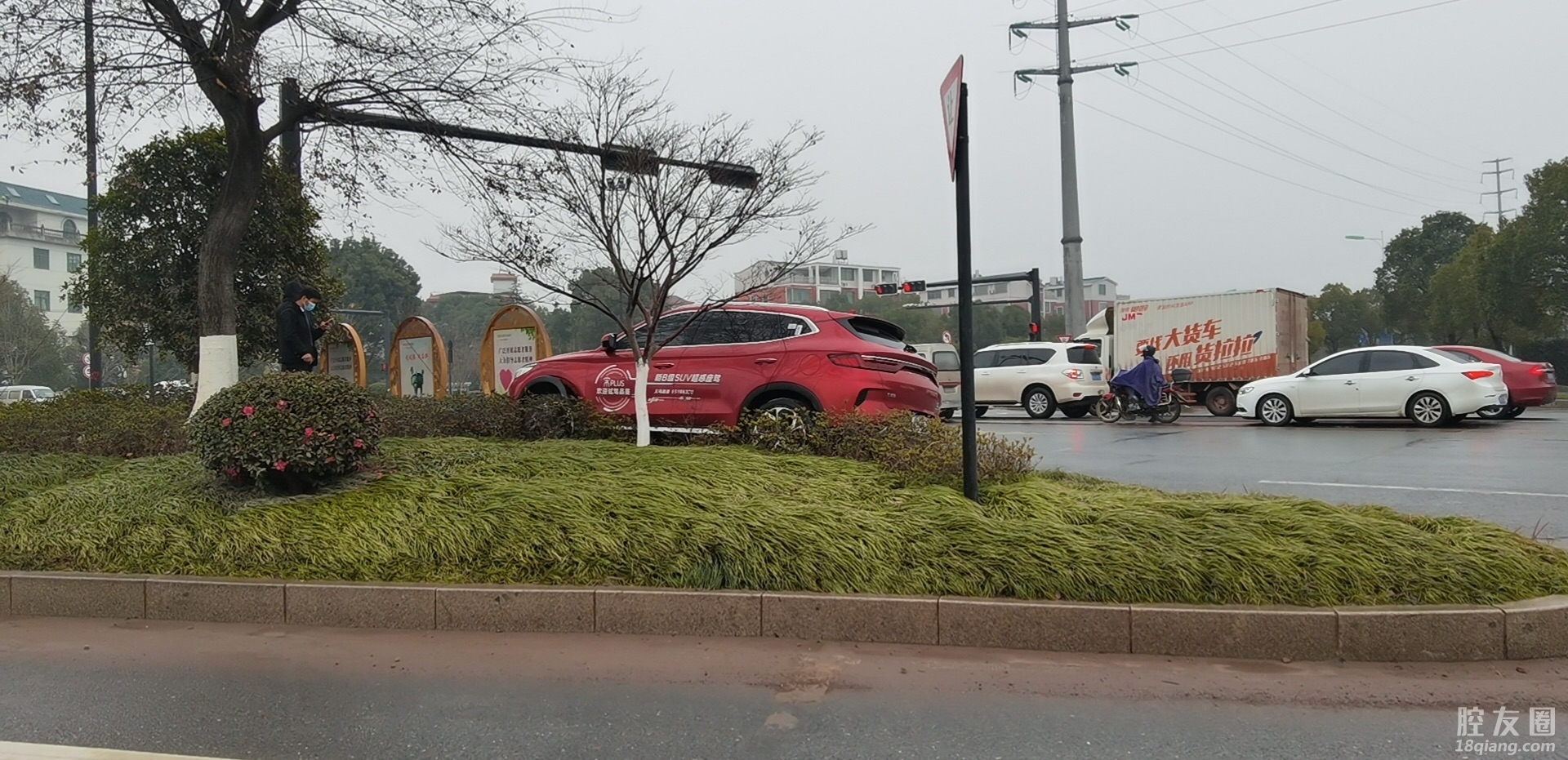 北站大道,试驾试到花坛上了