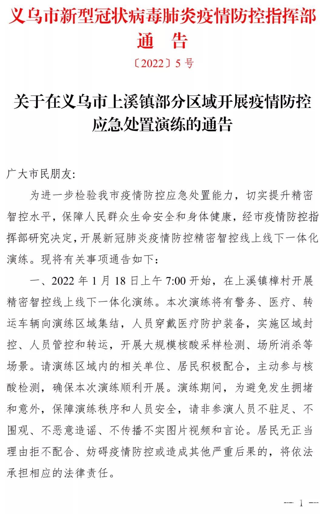 〔2022〕5号 | 义乌市新型冠状病毒肺炎疫情防控指挥部通告