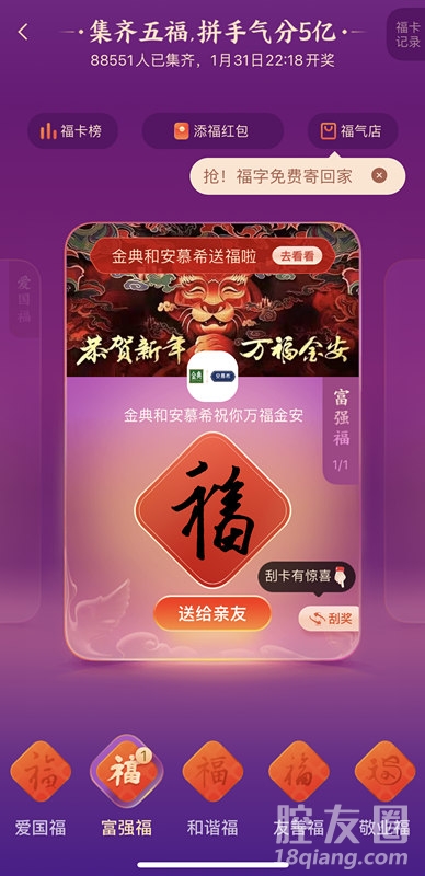 支付宝集福都集齐了吗 抖音也开始集年味卡了 需要找小伙伴一起战斗 赶紧十八腔腔友集福战队群 添加下方小编微信 拉你进群! ↓↓ 群里还有集福大神 教大家如何扫到全家福、敬业福 在群里还能资源共享 和腔友们一起组建家庭战队 瓜分支付宝5亿大奖 ↓↓