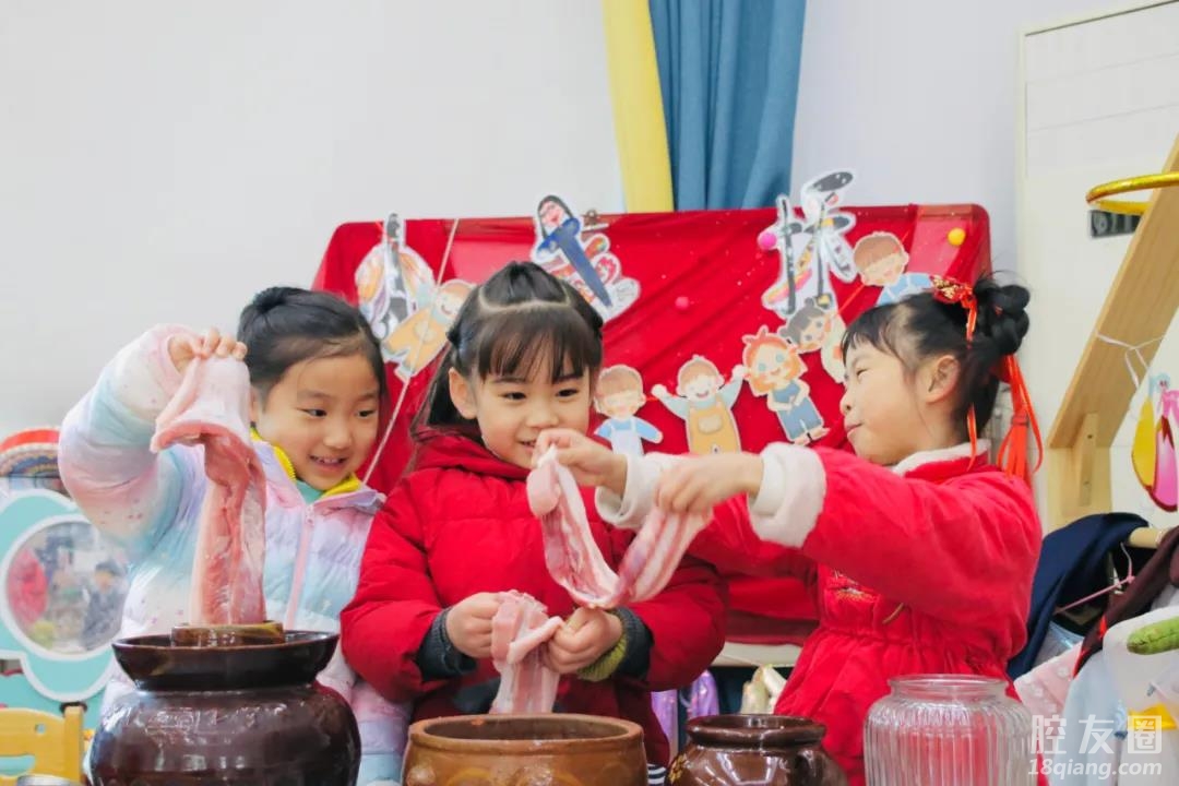 原来新丝路学校附属幼儿园给每个孩子发了一条年肉孩子们跟着老师学习腌制腊肉
