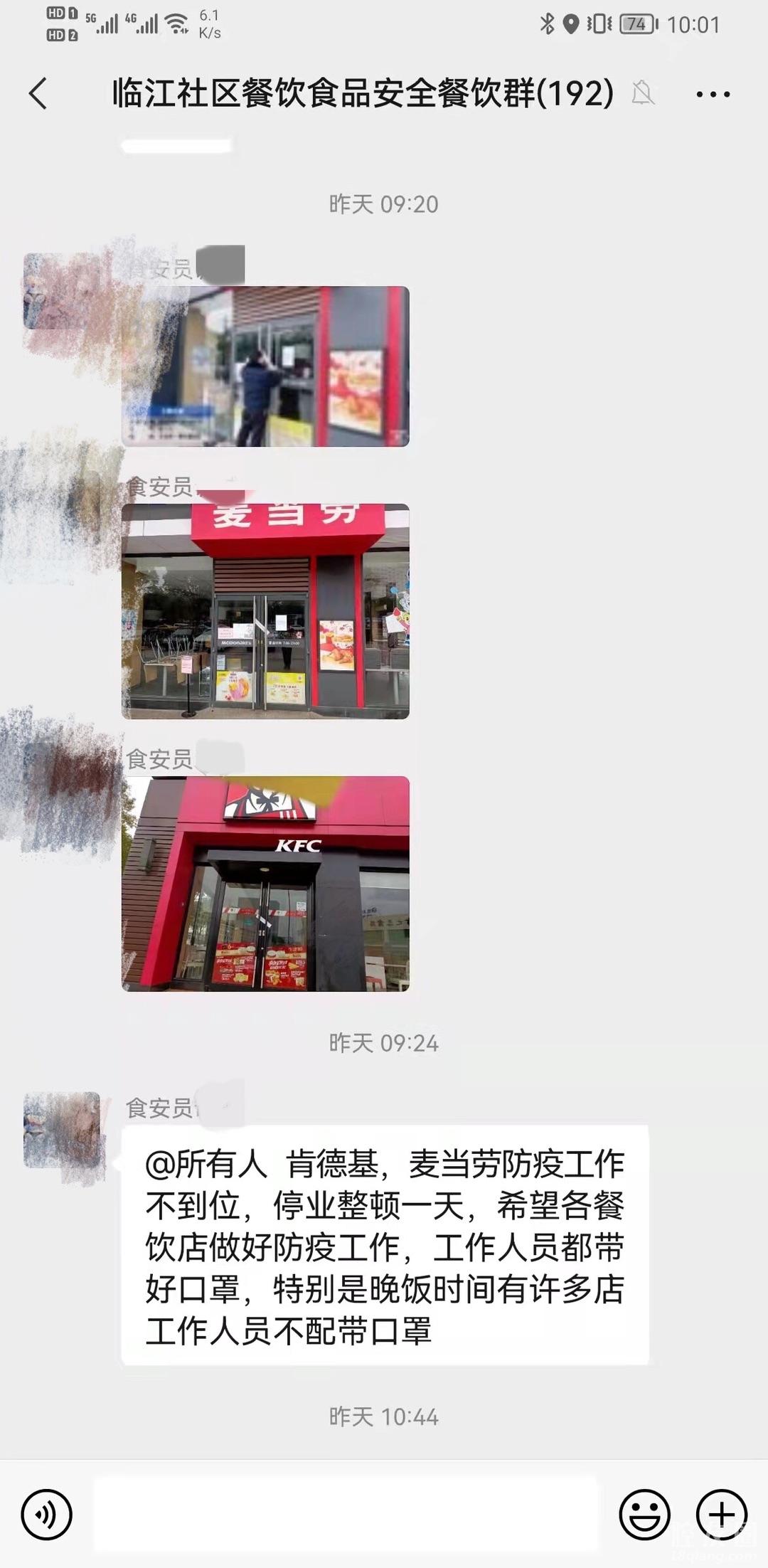 麦当劳肯德基昨天停业整顿一天,各餐饮还是要带好口罩,安全你我他