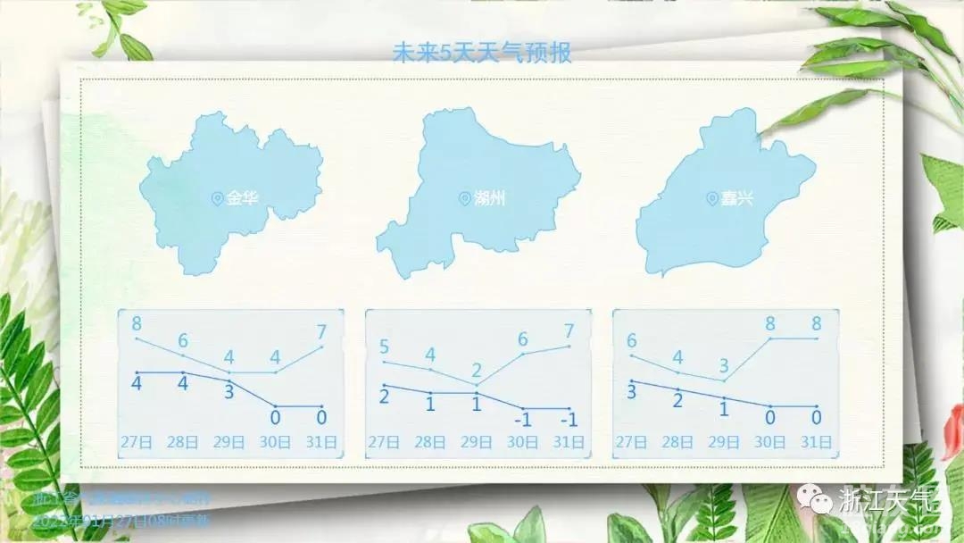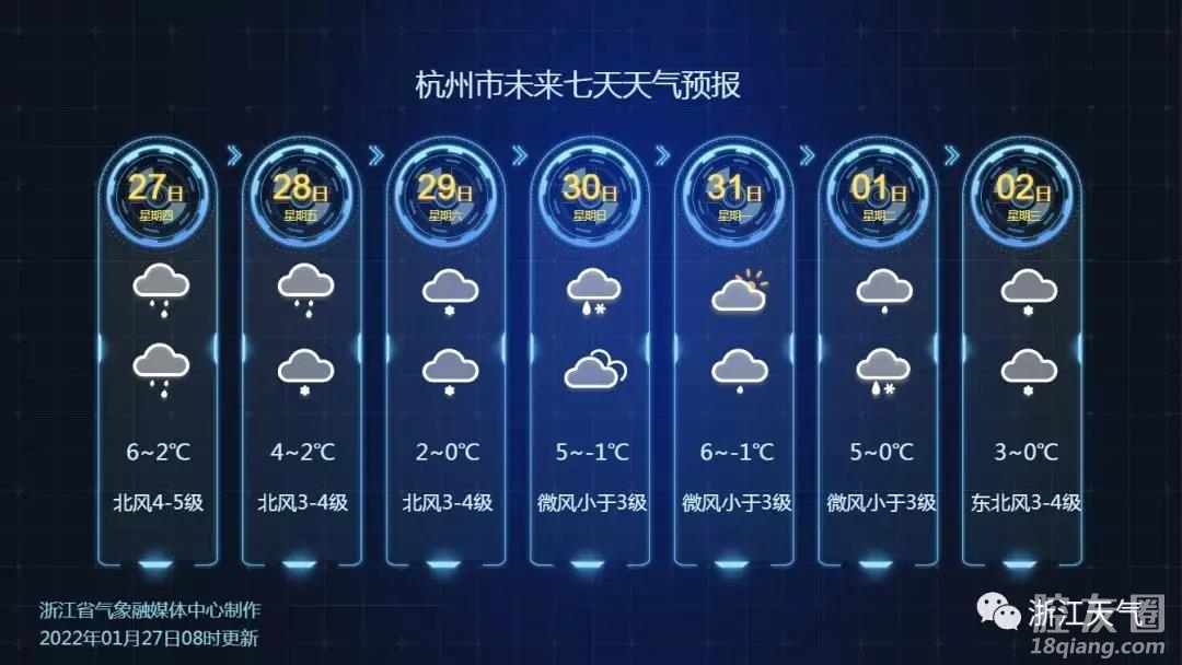 杭州市气象台刚刚也发布预报,1月28-30日,杭州有一次明显的雨雪天气过程,平原地区中雪局部大雪,山区中到大雪局部暴雪。1月30-31日气温低,30日山区最低气温-2~-4℃,31日最低气温平原地区-1~-3℃(山区-4~-7℃),有冰冻或严重冰冻,道路易结冰。请各相关部门提前做好应对低温、雨雪、冰冻等恶劣天气防范工作。