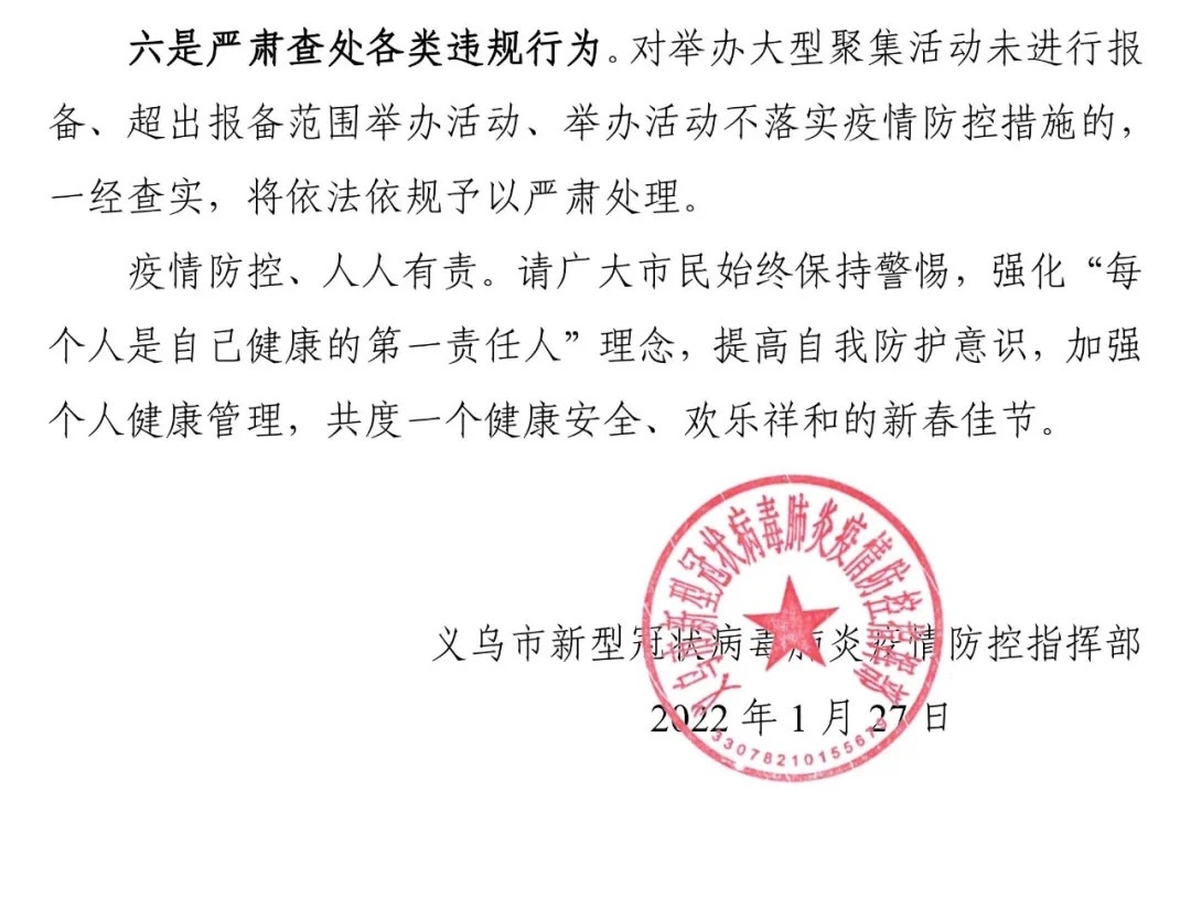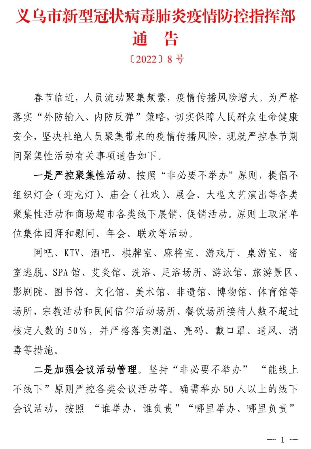 〔2022〕8号  义乌市新型冠状病毒肺炎疫情防控指挥部通告