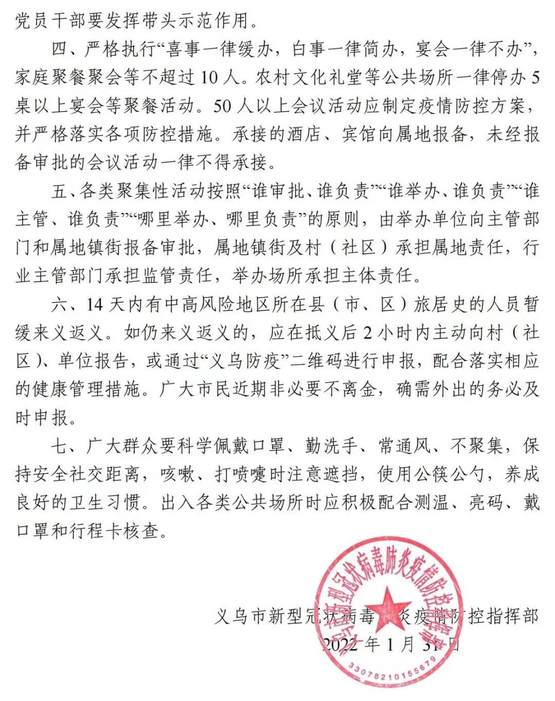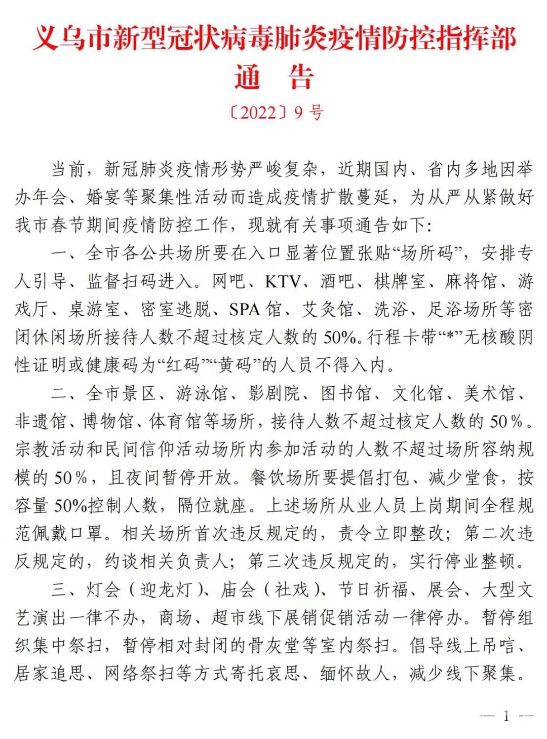 〔2022〕9号  义乌市新型冠状病毒肺炎疫情防控指挥部通告
