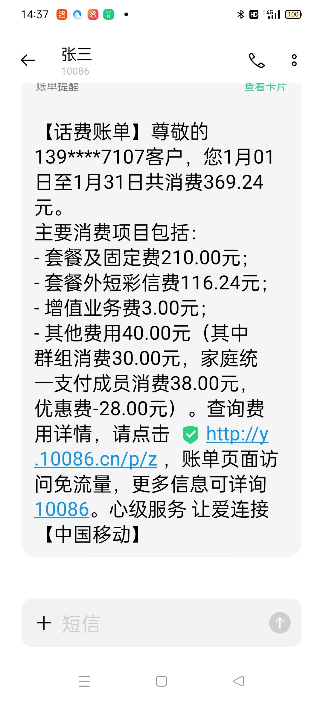 1月话费369.24元