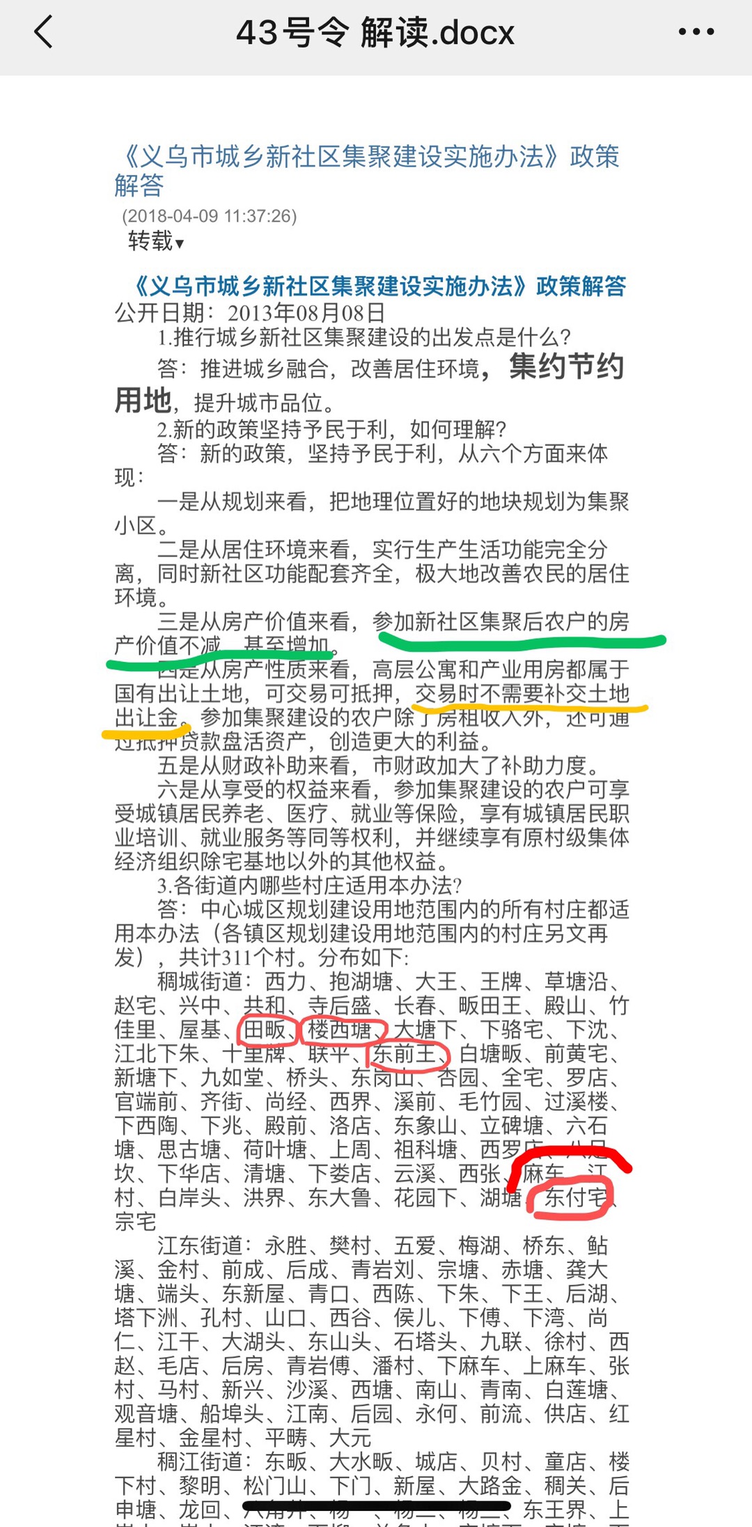43号令说“予民于利”,把国有划拨棚户区划进了社区集聚政策里解释,明确说了不需要交出让金。为什么田畈要交出让金?东付宅出让金为什么又是70万的天价?我们隔壁去年去街道、365问,说也是按东付宅这么算,以前是一点都问不出来,并说这房子不是卖的,是给你村民出租的