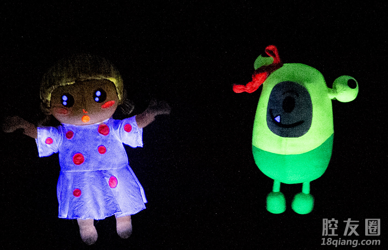 出时演员手持涂上萤光的道具、或在服装某些部位涂上色彩, 结合精准灵巧的肢体动作,整体营造出奇幻的效果,呈现出一段充满想象的表演。