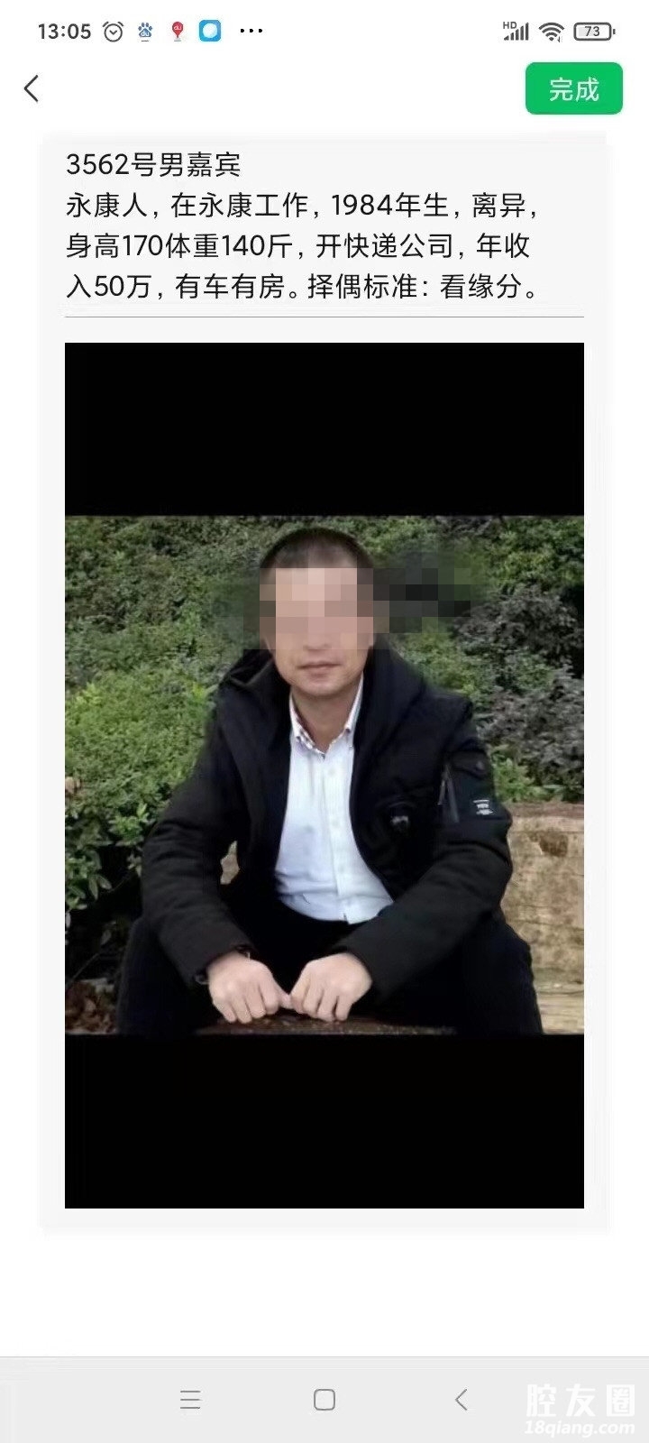曝光这男的,垃圾渣男!朋友通过某相亲平台认识一男的,“红娘”发给她的资料,84年离异永康人,办厂的,微信聊天觉得对方还行吧!说开了一个快递公司,差不多聊了一个月左右准备见面!我看聊天记录,都是些问候什么的!节日都没见发过红包!呵呵!男方派司机来接她去永康,车是捷豹!听司机说本来是7系,在4S店保养,所以4S店先给这车代步,当晚住在酒店,那男的半夜凌晨居然能进房间!!!前提是房间是反锁的!!!我长这么大第一次听说酒店还可以这样操作,给各位女孩子提个醒吧!后面的事情腔友知道了吧!虽然我朋友说她拒绝,这男的没得手,我半信半疑吧!我觉得这男的打着相亲的幌子已经很有问题了!(豪车骗炮成功概率更高)第二天男的以忙为理由,让司机送朋友回义乌!