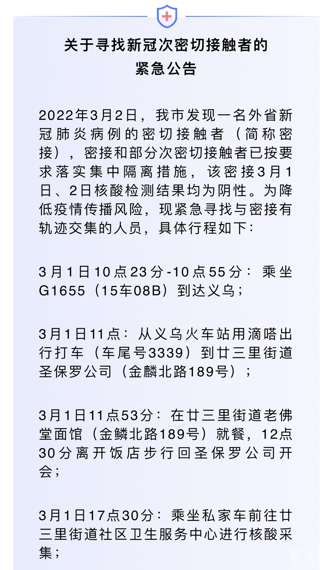 [义乌故事]关于寻找新冠次密切接触者的紧急公告 [复制链接]