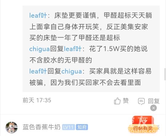 于是紧接着叶女士分别在3月1日**论坛第二次发帖,3月2日在十八腔发帖。语言也更不负责任更无底线,比如十八腔第15楼在没有权威部门检测的情况下,张口就说“美集安家买的床垫一年多了还是甲醛超标”,再比如**第二个帖子的第9楼“现在商家赚这些昧良心钱不怕影响后代福报吗”,进行无关的人身攻击。