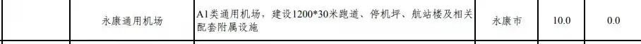 永康规划建设A1类通用机场,建设1200*30米跑道、停机坪、航站楼及相关配套附属设施。