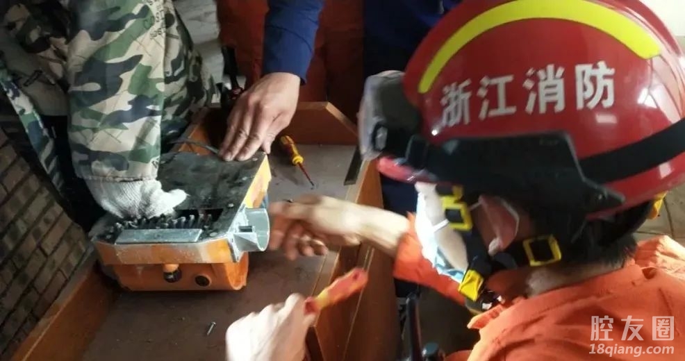 房子旧貌换新颜,原本是一件值得高兴的事。但是,义乌市廿三里街道的朱先生一家却满腹愁绪。3月5日下午三点多,正在帮家里装修的朱先生因操作不慎,左手三根手指被卷入刨墙机,现场情况危急。 3月5日15时19分,义乌市消防救援支队119指挥中心接到报警后,立即调派廿三里消防救援站、廿三里专职消防队前往施救。15时25分,消防救援人员赶到现场时,看到朱先生左手除了大拇指和小拇指都被卡在机器的铲刀与外壳钢板之间,鲜血直流,表情痛苦不堪。 现场指挥员立即组织展开处置,一边安抚朱先生情绪,一边尝试用螺丝刀、扳手等工具拧松螺丝。但是由于螺丝打滑,机器拆解工作被迫暂停。救援人员再次对机器结构进行观察,发现如果通过破拆,使铲刀和外壳钢板之间有足够的空间,被卡住的手指就可以顺利取出。“你别害怕,不会切到你手的。”消防救援人员立即改用角磨机进行破拆,大家分工协作,一名队员耐心操作切割钢板,另几名队员固定机身,为朱先生做好防护措施,并不断对切割处喷水降温。 经过近20分钟的紧张救援,朱先生的左手终于恢复了自由。现场医护人员进行了紧急包扎处理,并将朱先生送往医院救治。据了解,这款刨墙机是朱先生从网上购买的,原本想借助这个铲墙利器装修房子,没想到工作到一半突然停止运转了,朱先生在没有切断电源的情况下检查机器,手套带着手指一起被卷了进去。事故造成其手指骨折,皮肉损伤严重,需要住院手术治疗。