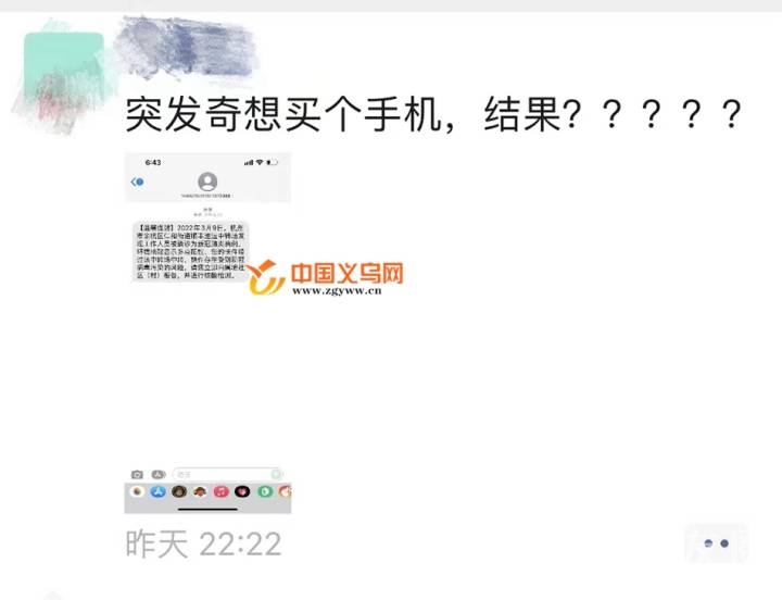 “妇女节买的新手机,看了下物流是从杭州寄出来的,没想到中招了。”义乌市民俞女士收到该提醒短信后,忍不住发了条朋友圈,并表示已连夜前往就近核酸采样点进行检测。